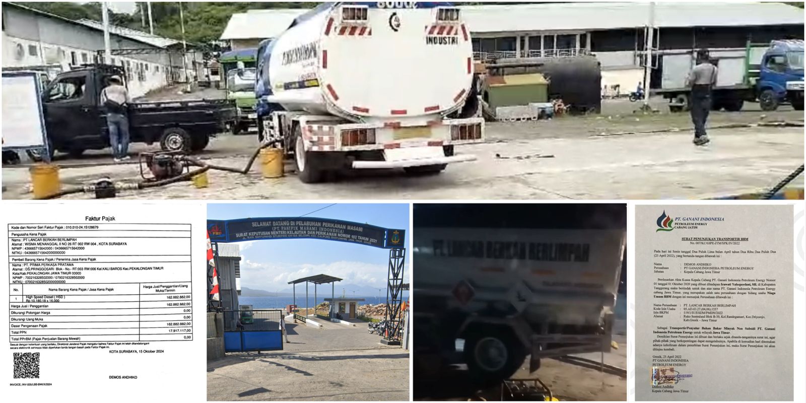 Dalam dokumen yang diperoleh media, PT Lancar Berkah Berlimpah disebut sebagai transportir BBM industri di lokasi tersebut. Perusahaan ini diketahui memiliki izin transportir, namun BBM yang diangkut berasal dari PT Ganani Indonesia Petroleum Energi, yang memiliki izin niaga umum. Direktur PT Lancar Berkah Berlimpah, Demos Andhiko, juga tercatat sebagai kepala cabang Jawa Timur PT Ganani Indonesia Petroleum Energi, yang menandatangani surat penunjukan transportir.