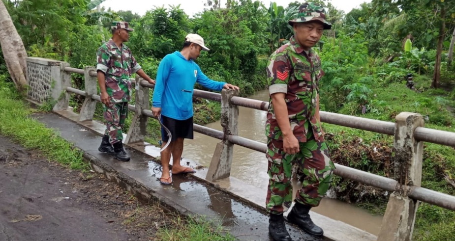 “Saya tekankan kepada para Babinsa untuk selalu memantau dan memonitor perkembangan keadaan Desa binaan masing-masing, serta mengajak warga yang berada di sekitar sungai agar selalu waspada dan bersiaga memantau kondisi arus sungai, dikarenakan aliran arus sungai yang tinggi dan deras bisa naik kapanpun dan curah hujan yang makin meningkat,” Perintah Danramil Kapten Gunoto.
