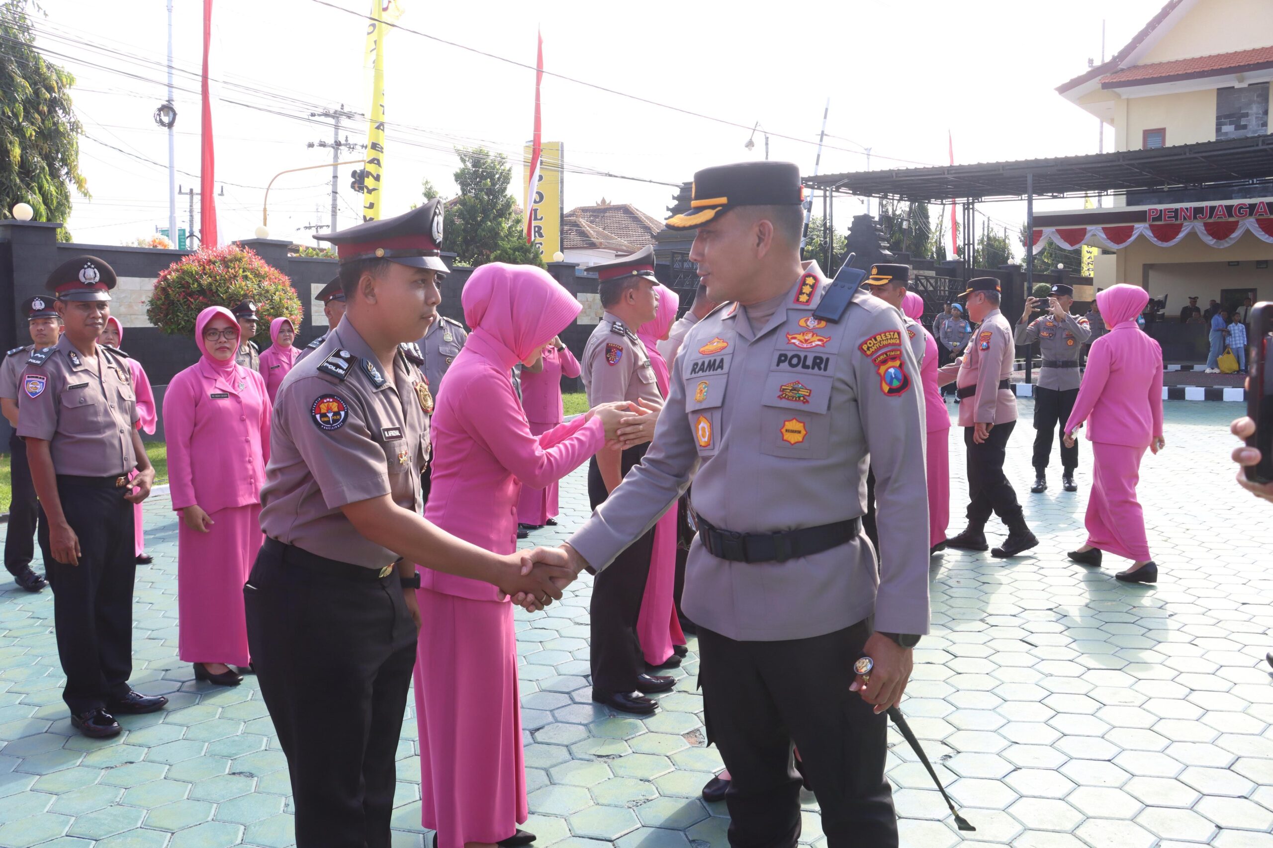 Kapolresta Banyuwangi Kombes Pol Rama Samtama Putra,S.I.K., M.Si., M.H., yang memimpin upacara menyampaikan apresiasi atas dedikasi para anggota yang menerima kenaikan pangkat. Kapolresta Banyuwangi menegaskan bahwa kenaikan pangkat bukan hak, melainkan bentuk penghargaan atas kinerja, loyalitas, dan integritas yang telah ditunjukkan selama bertugas.