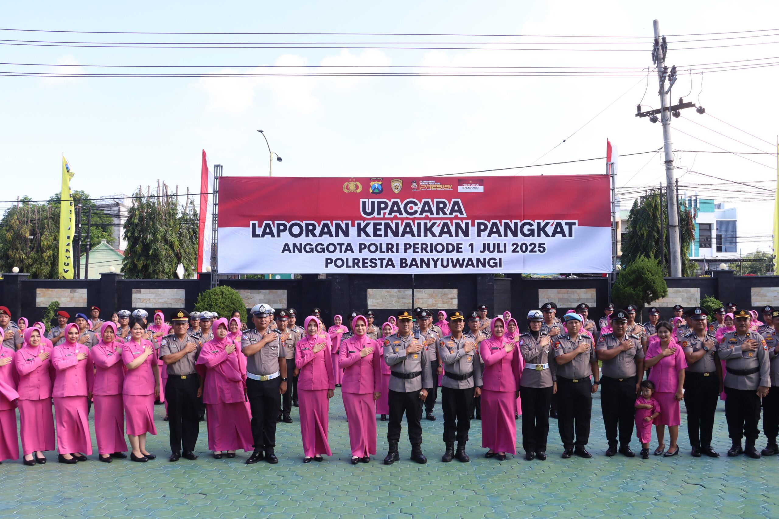 Banyuwangi, Actanews.id  –  Polresta Banyuwangi menggelar upacara kenaikan pangkat bagi puluhan anggotanya dalam rangka periode 1 Juli 2025 dan dinyatakan sebanyak 54 personil dinyatakan layak naik pangkat. Upacara berlangsung khidmat di halaman Mapolresta Banyuwangi, Senin (1/7/2025).