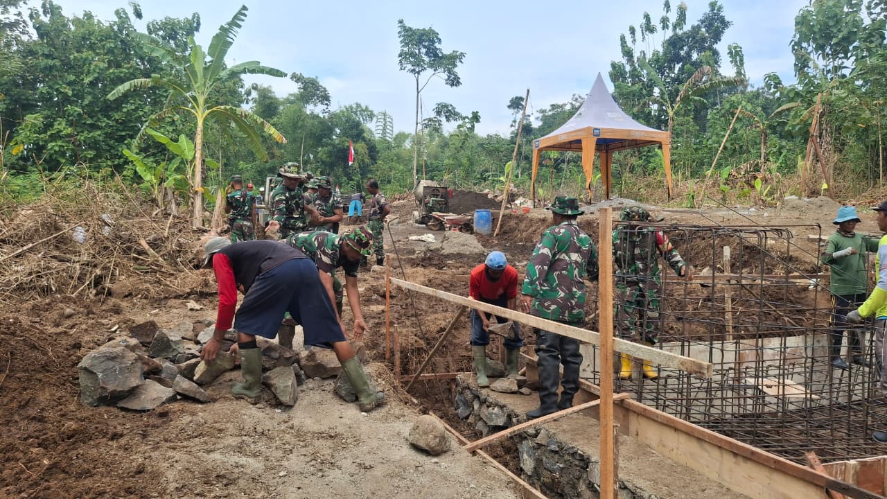 Banyuwangi, Actanews.id – Pembangunan Jembatan Perintis Garuda oleh Kodim 0825 Banyuwangi memasuki tahap krusial pada Kamis (29/1). Fokus pengerjaan saat ini tertuju pada penguatan struktur bawah, meliputi pemasangan batu fondasi dan perakitan besi tulangan. Progres di lapangan menunjukkan efisiensi kerja yang signifikan berkat keterlibatan aktif personel TNI dan bantuan tenaga dari warga sekitar yang bahu-membahu mempercepat proses konstruksi.