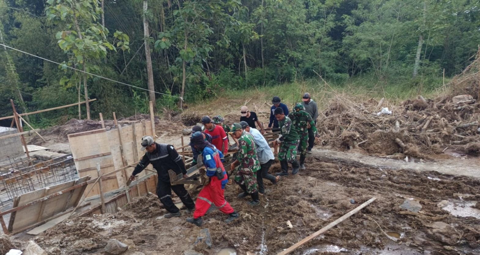 Meski menghadapi medan yang cukup berat, proses pengerjaan tetap berjalan sesuai dengan target yang telah direncanakan. Di lokasi pembangunan, prajurit TNI bersama masyarakat setempat tampak bahu-membahu memindahkan material struktur baja secara manual.