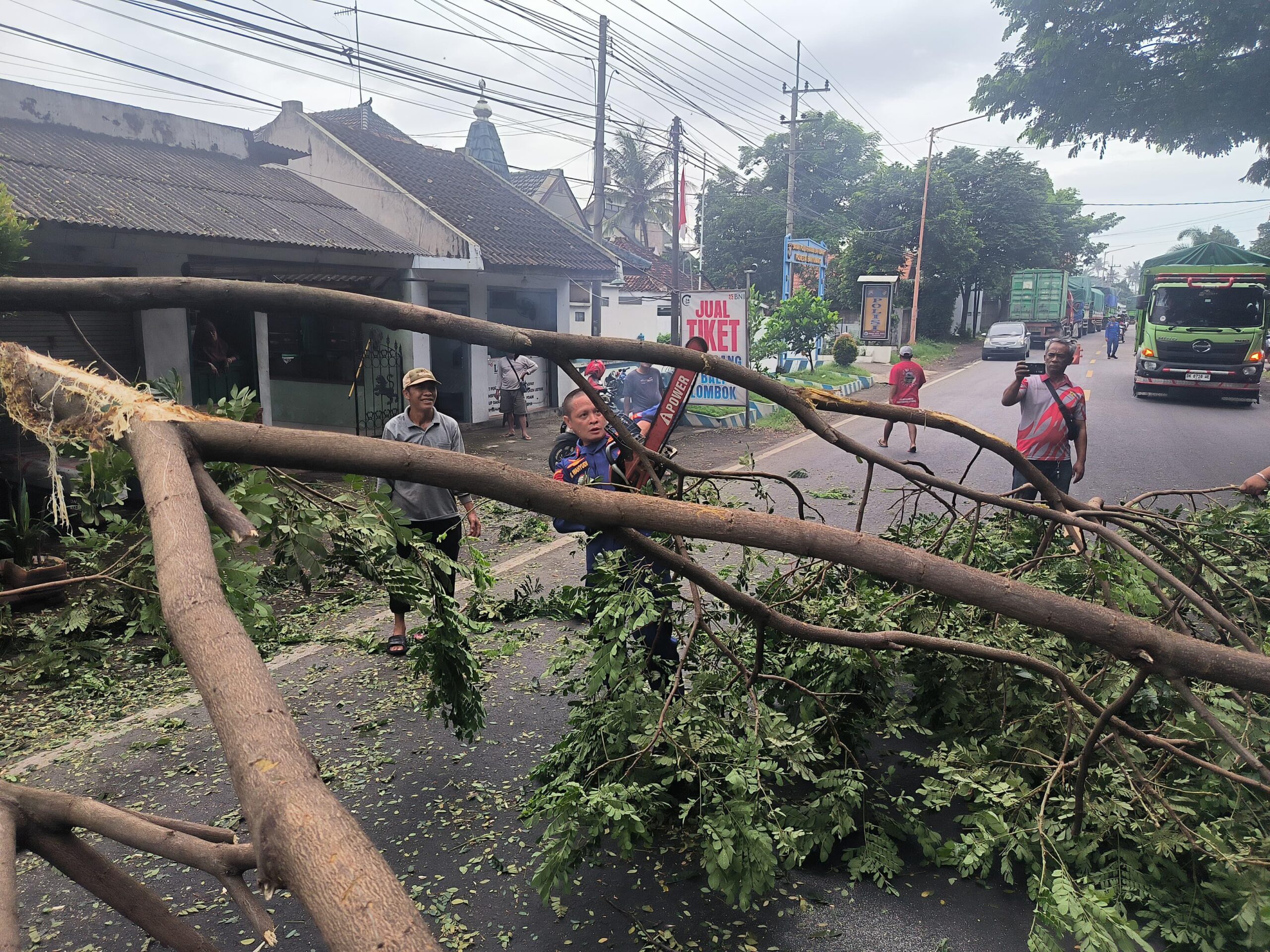 Peristiwa bermula sekitar pukul 06.30 WIB, ketika sebuah pohon besar tumbang dan melintang tepat di jalur utama Jalan Raya Jurusan Situbondo, di depan Mako Sat Polairud Polresta Banyuwangi. Akibatnya, arus lalu lintas dari kedua arah sempat lumpuh total, menciptakan antrean kendaraan yang cukup panjang serta risiko kecelakaan bagi pengguna jalan.