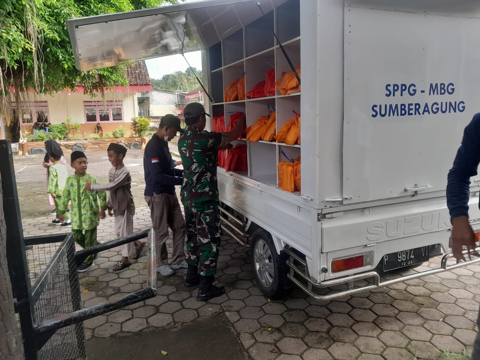 Pesanggaran,  Actanews.id  – Anggota Koramil 0825-11/Pesanggaran, Serma Suliswanto aktif melakukan pendampingan serta pengawalan distribusi program Makan Bergizi Gratis (MBG) dengan menu kering selama Bulan Ramadan, guna memastikan paket makanan bernutrisi menu buka puasa diterima langsung oleh pelajar sekolah bertempat di SDN 8 Sumberagung Dusun Pancer Desa Sumberagung Kecamatan Pesanggaran Kabupaten Banyuwangi, (26/02/2026).