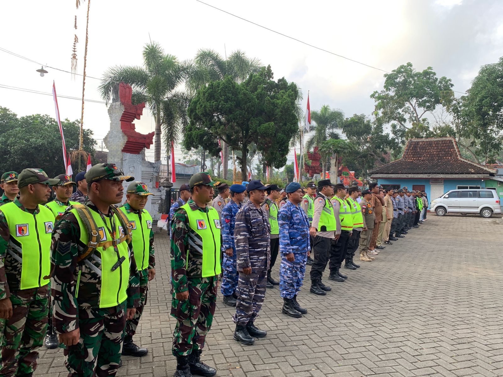 Apel dipimpin langsung oleh Kapolsek Pesanggaran AKP Maskur, Camat Pesanggaran Andik Basuki, Danramil 0825/11 Kapten Arh Edy S, dan Kabag Ren Polresta Banyuwangi Kompol Sudarsono. Usai apel, dilakukan pembagian sektor pengamanan, makan pagi bersama, dan pergeseran personel ke titik-titik strategis.