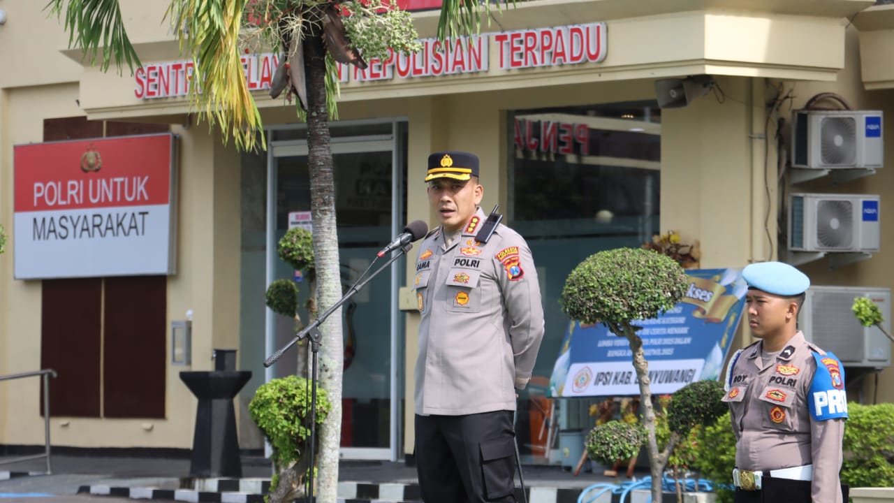 Banyuwangi, Actanews.id — Kapolresta Banyuwangi Kombes Pol. Rama Samtama Putra, S.I.K., M.Si., M.H. memimpin Apel Jam Pimpinan yang digelar di halaman Mako Polresta Banyuwangi, Senin (15/12/2025).