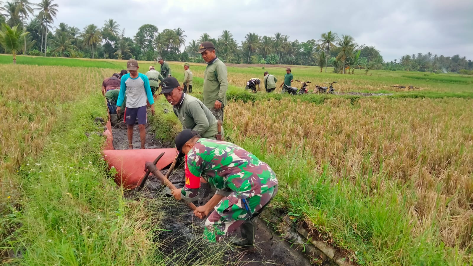 Kegiatan kerja bakti perbaikan saluran irigasi ini berlangsung lancar dan tertib, menunjukkan harmonisasi hubungan antara TNI dengan masyarakat dalam mendukung pembangunan di sektor pertanian.