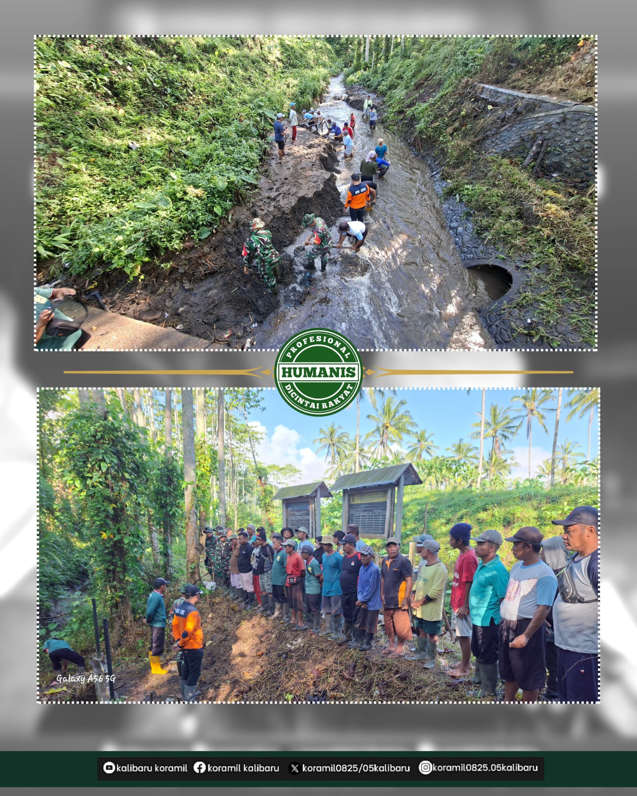 Babinsa Koramil 0825/05 Kalibaru Bersama Masyarakat Bersinergi Bersihkan Bendungan, Optimalkan Ketahanan Pangan
