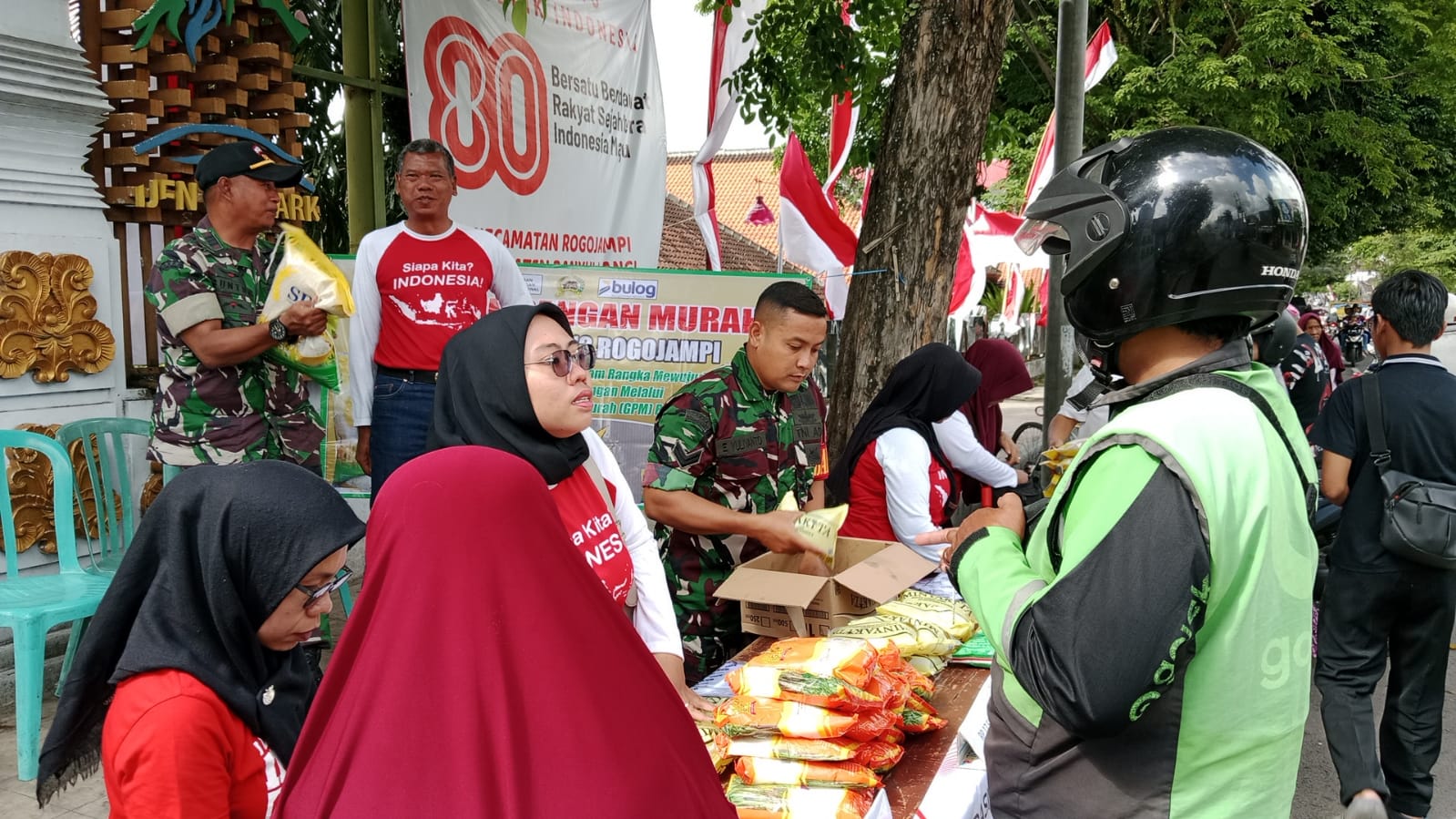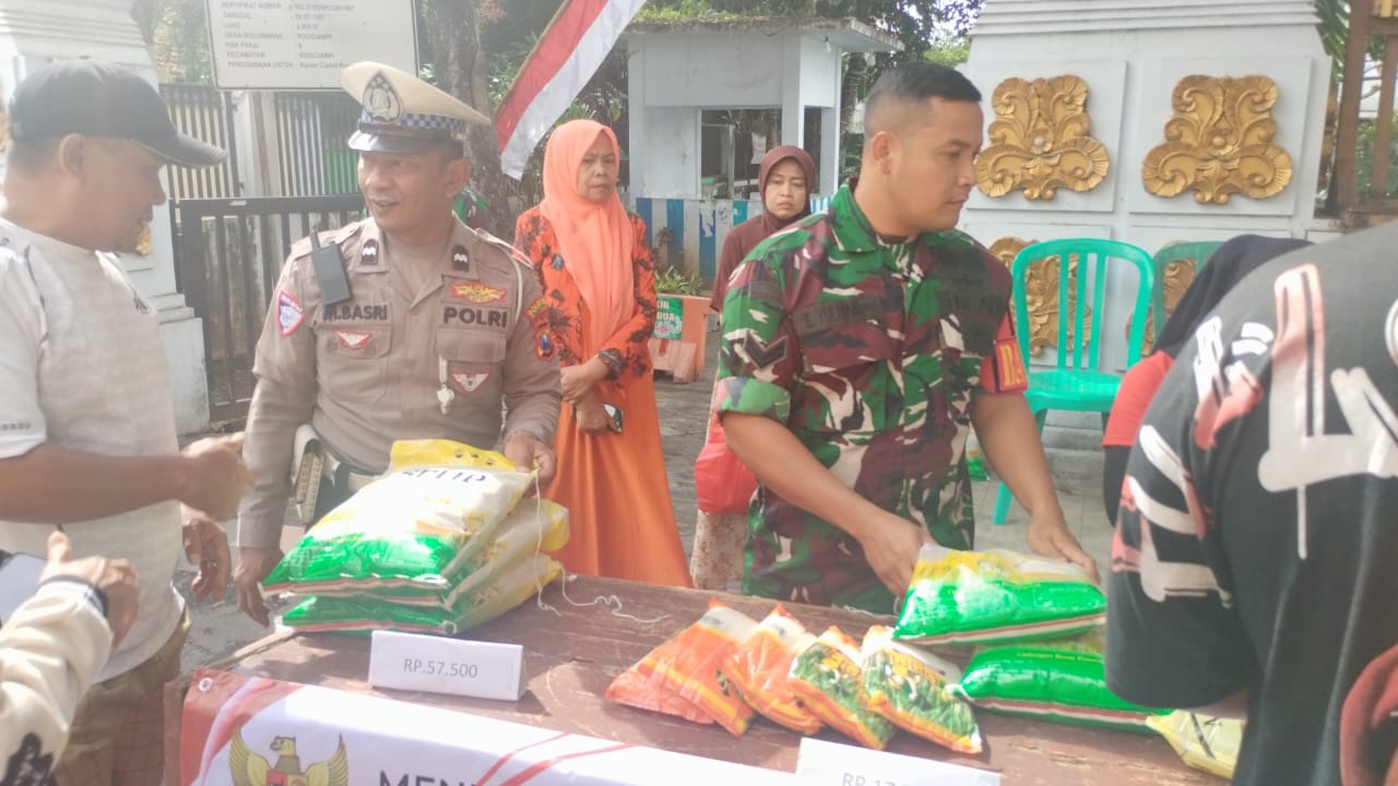 Rogojampi, Actanews.id – Babinsa Koramil 0825/12 Rogojampi, Sertu Eko Yuliyanto, hari ini mendampingi kegiatan Gerakan Pangan Murah (GPM) yang digelar di depan Kantor Kecamatan Rogojampi. Kegiatan ini merupakan bagian dari upaya pemerintah dalam mewujudkan ketahanan dan swasembada pangan di wilayah tersebut. Rabu, (03/09/2025).