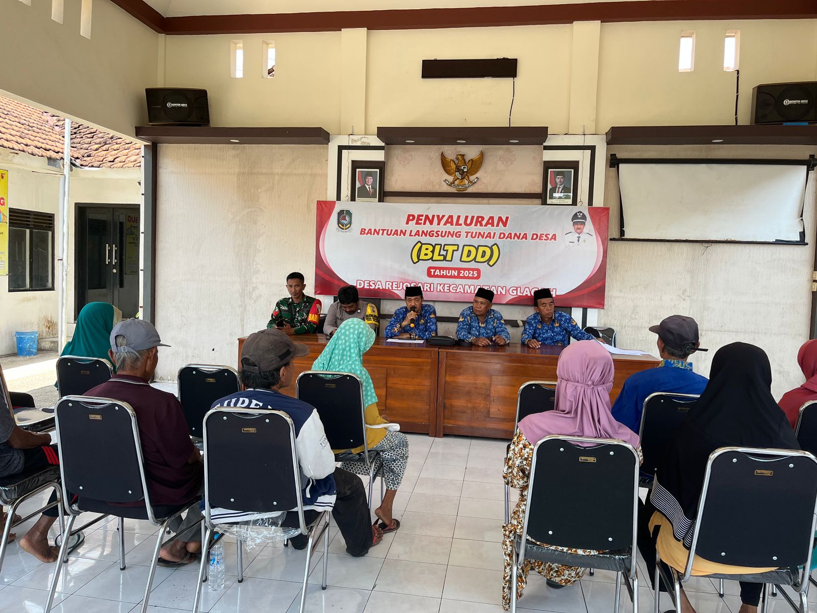 Banyuwangi – Babinsa Desa Rejosari bersama aparat desa dan Bhabinkamtibmas turut mengawal penyaluran Bantuan Langsung Tunai Dana Desa (BLT DD) kepada warga penerima manfaat di Pendopo Desa Rejosari, Senin (10/11/2025) pukul 09.00 WIB.