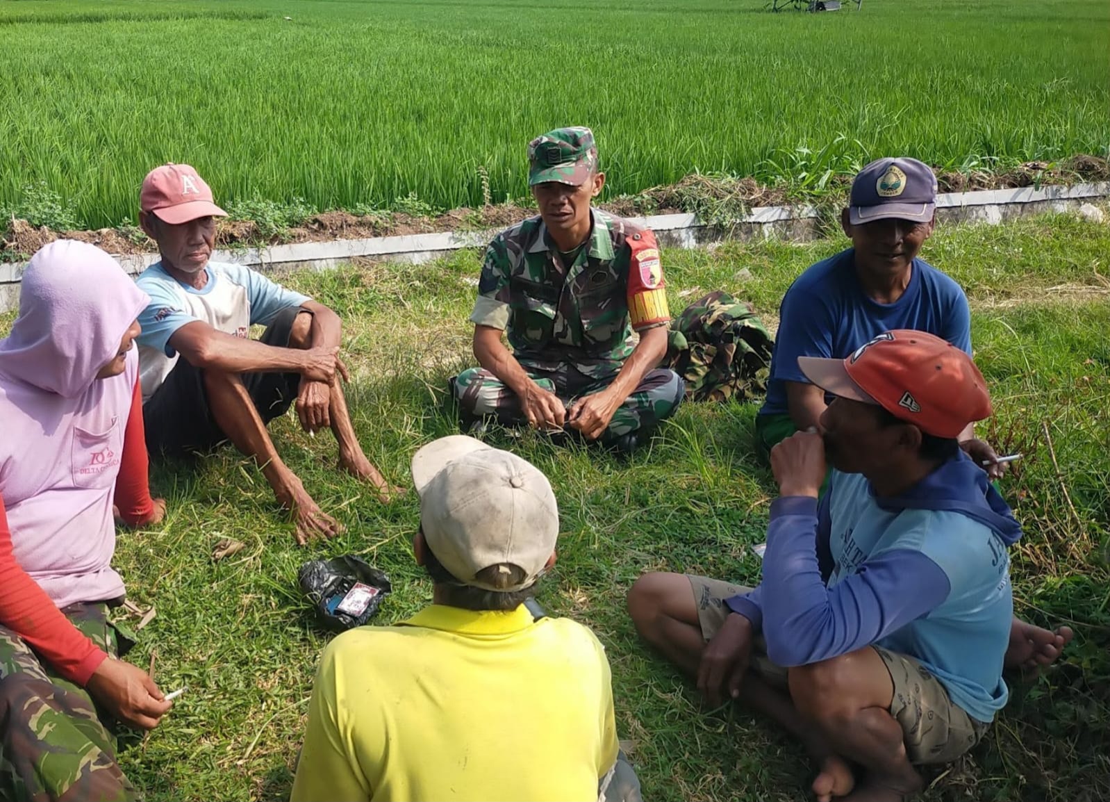 Babinsa Singojuruh Masuk ke Sawah, Komsos dengan Petani untuk Tingkatkan Ketahanan Pangan