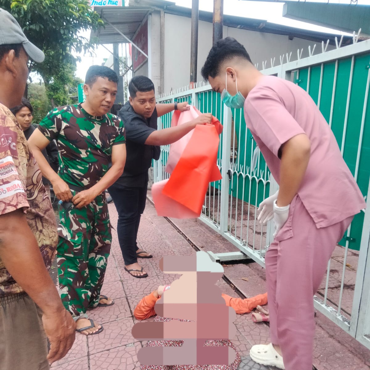Petugas kemudian memeriksa kondisi pernapasan dan luka korban sebelum menghubungi Kapuskes Sobo untuk meminta ambulans. Tim medis dari RS Fatimah tiba tak lama berselang dan membawa korban untuk penanganan lebih lanjut.