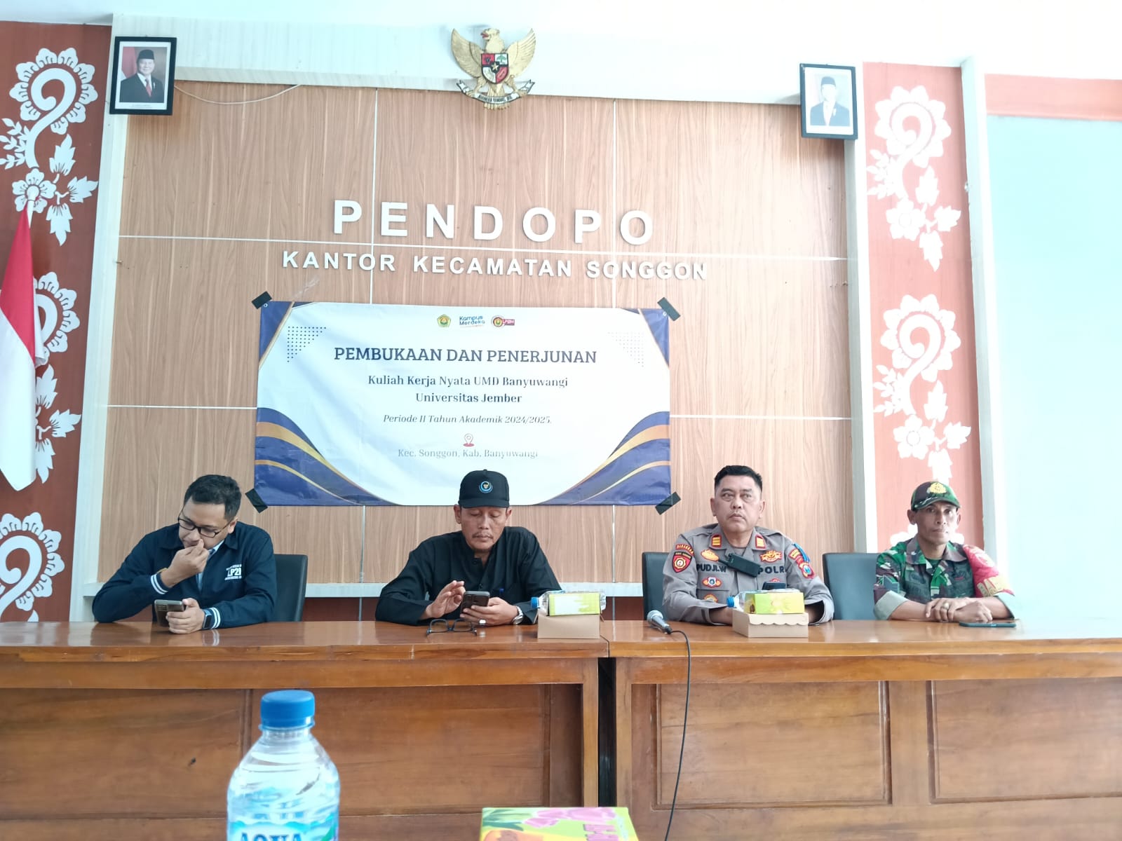 Acara dimulai pukul 13.30 WIB, dipimpin Camat Songgon Nurawi, S.Sos, dan turut dihadiri Kapolsek Songgon AKP Puji Wahyono, kepala desa se-Kecamatan Songgon, pembina KKN, serta 70 mahasiswa peserta KKN.
