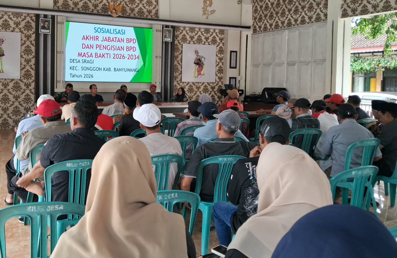Acara yang digelar di Pendopo Balai Desa Sragi pada pukul 13.30 WIB tersebut dihadiri lebih dari 50 peserta yang terdiri dari Kepala Desa Sragi Hartono, S.H., Ketua dan anggota BPD, para kepala dusun, perangkat desa, perwakilan RT/RW, serta tokoh masyarakat.
