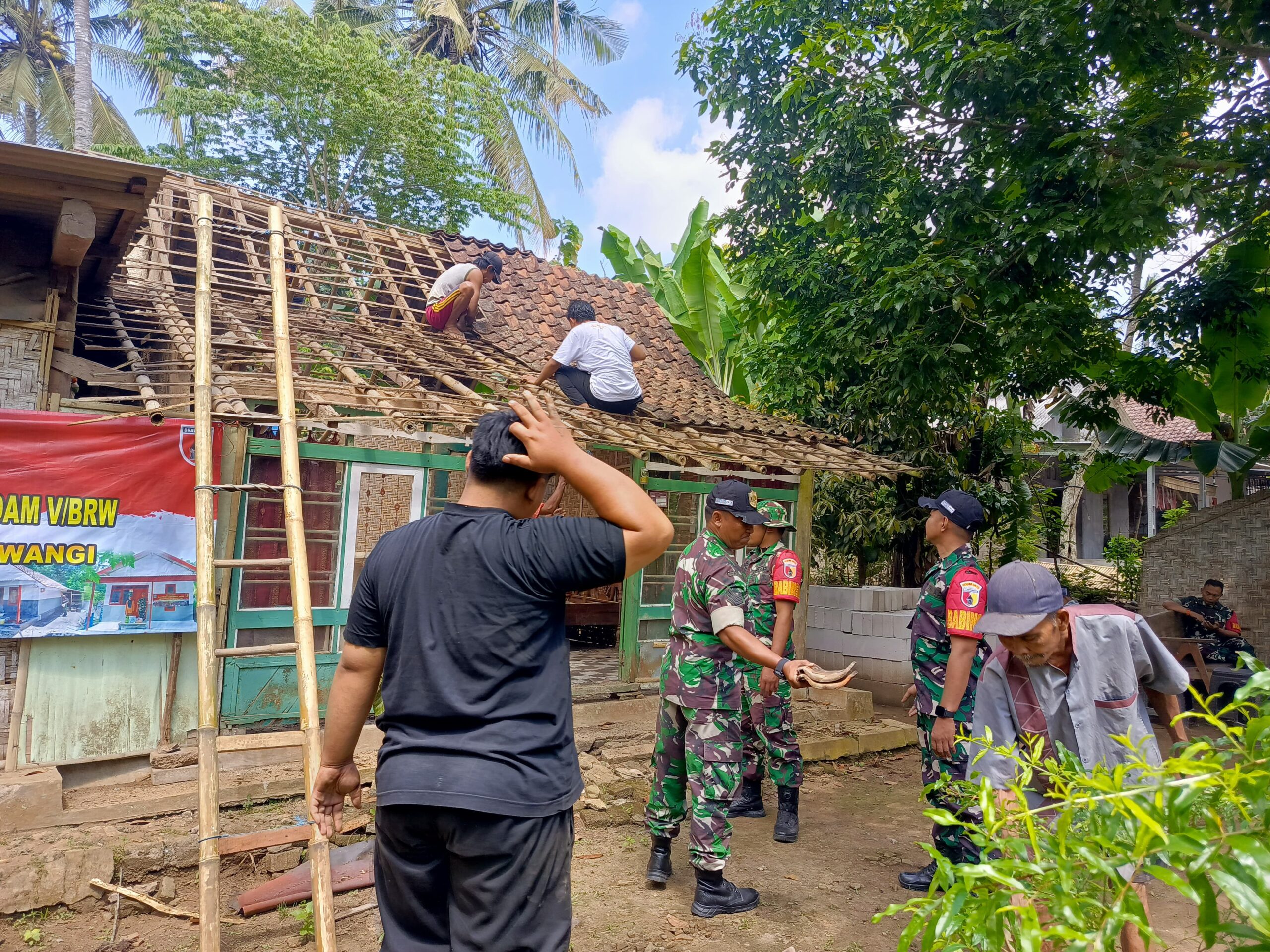 Anggota Koramil 0825-21/Kalipuro Bergotong Royong Membangun Rutilahu