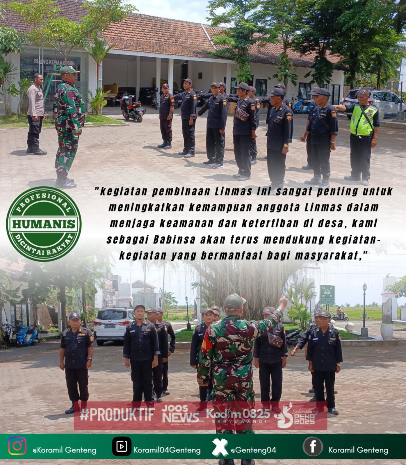 GENTENG Actanews.id – -Babinsa Desa Kaligondo, Sertu Eko Sofyan Hadi, melaksanakan kegiatan Pembinaan Linmas di halaman Balai Desa Kaligondo Kecamatan Genteng. Kegiatan ini bertujuan untuk meningkatkan kemampuan dan kesadaran anggota Linmas dalam menjaga keamanan dan ketertiban di desa.