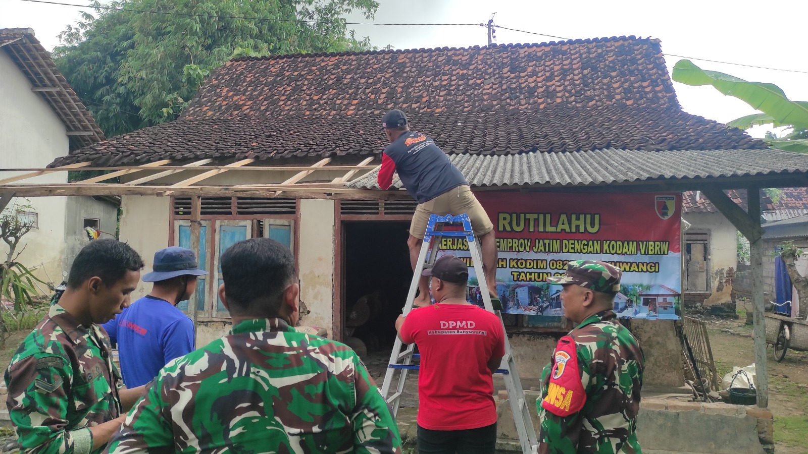 Tampak dalam kegiatan tersebut, Babinsa Koramil 0825/17 bersama masyarakat bahu-membahu memperbaiki atap rumah warga penerima bantuan. Mereka menurunkan genteng lama dan mengganti dengan material baru agar kondisi rumah menjadi lebih aman dan nyaman untuk ditempati.
