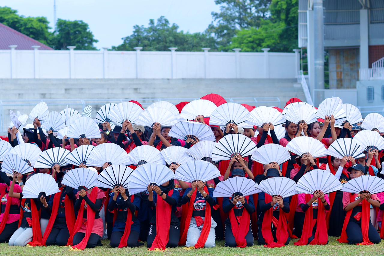 Ribuan penari dari berbagai usia mulai 4 tahun hingga SMA, termasuk Gandrung senior, tampak bersemangat berlatih formasi dan gerakan.