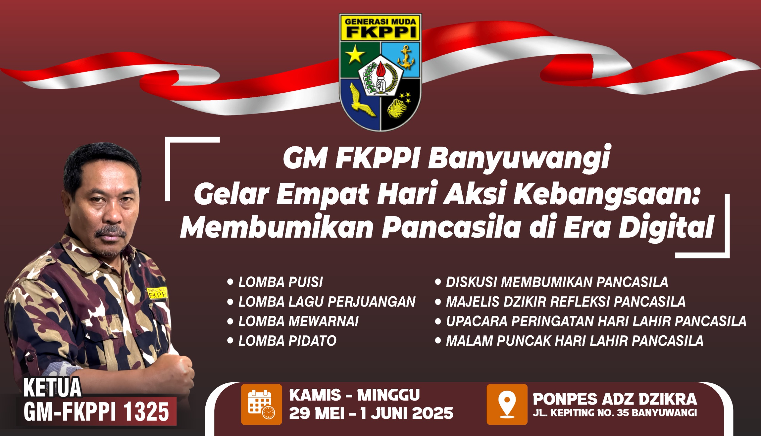 “Kami mengajak semua warga Banyuwangi untuk terlibat aktif. Ini bukan hanya acara GM FKPPI, tapi milik seluruh rakyat. Mari jadikan Pancasila sebagai pijakan bersama dalam menghadapi masa depan,” tegas Achmad Wahyudi.