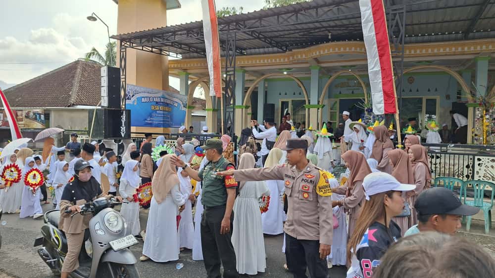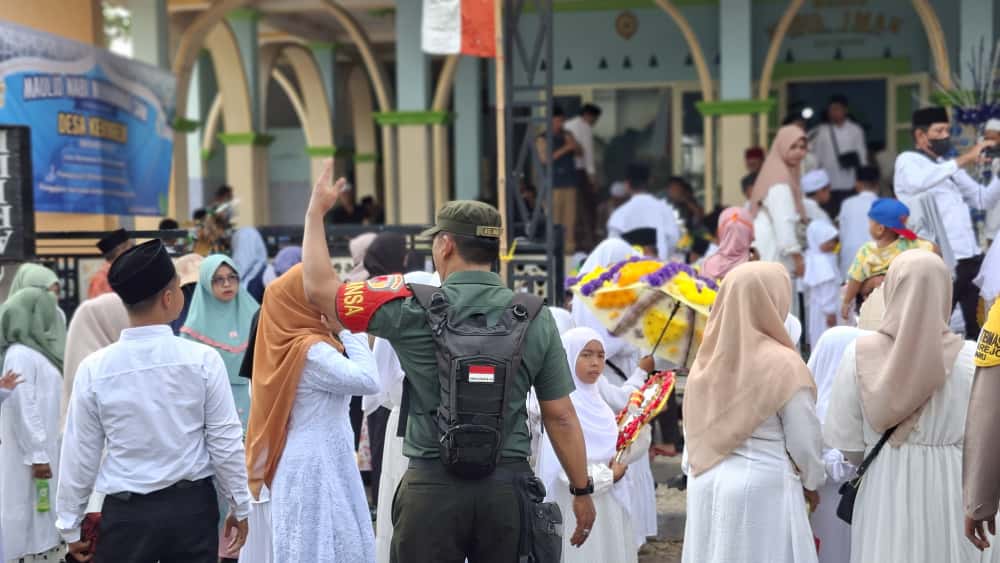 ​Kalibaru, Banyuwangi – Sinergi antara TNI dan Polri dalam membina kerukunan masyarakat kembali terwujud dalam peringatan hari besar Islam. Babinsa Koramil 0825/05 Kalibaru, Serda Agus Muryadi, didampingi oleh Bhabinkamtibmas Polsek Kalibaru, menghadiri acara peringatan Maulid Nabi Muhammad SAW 1447 H yang penuh khidmat.