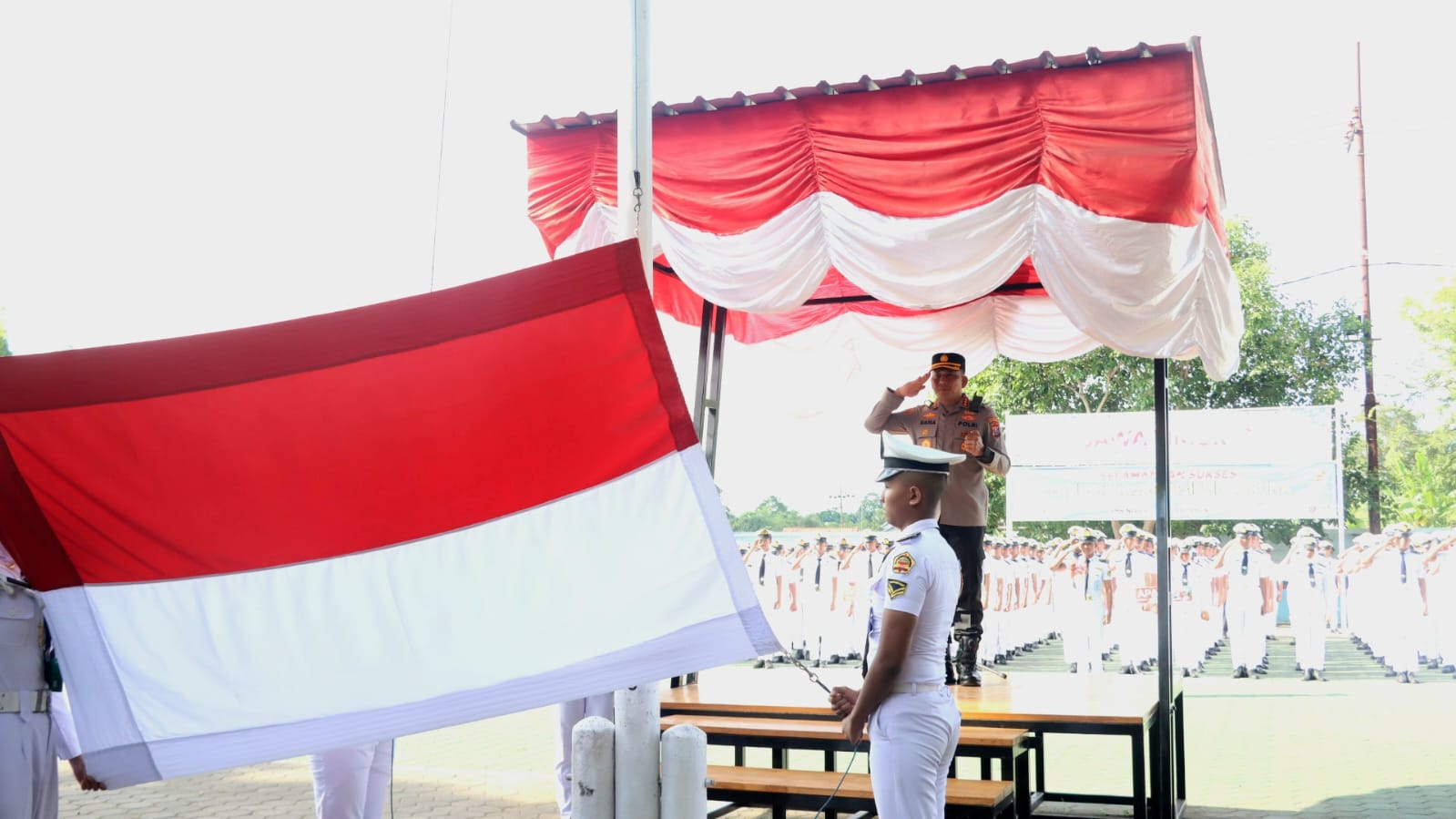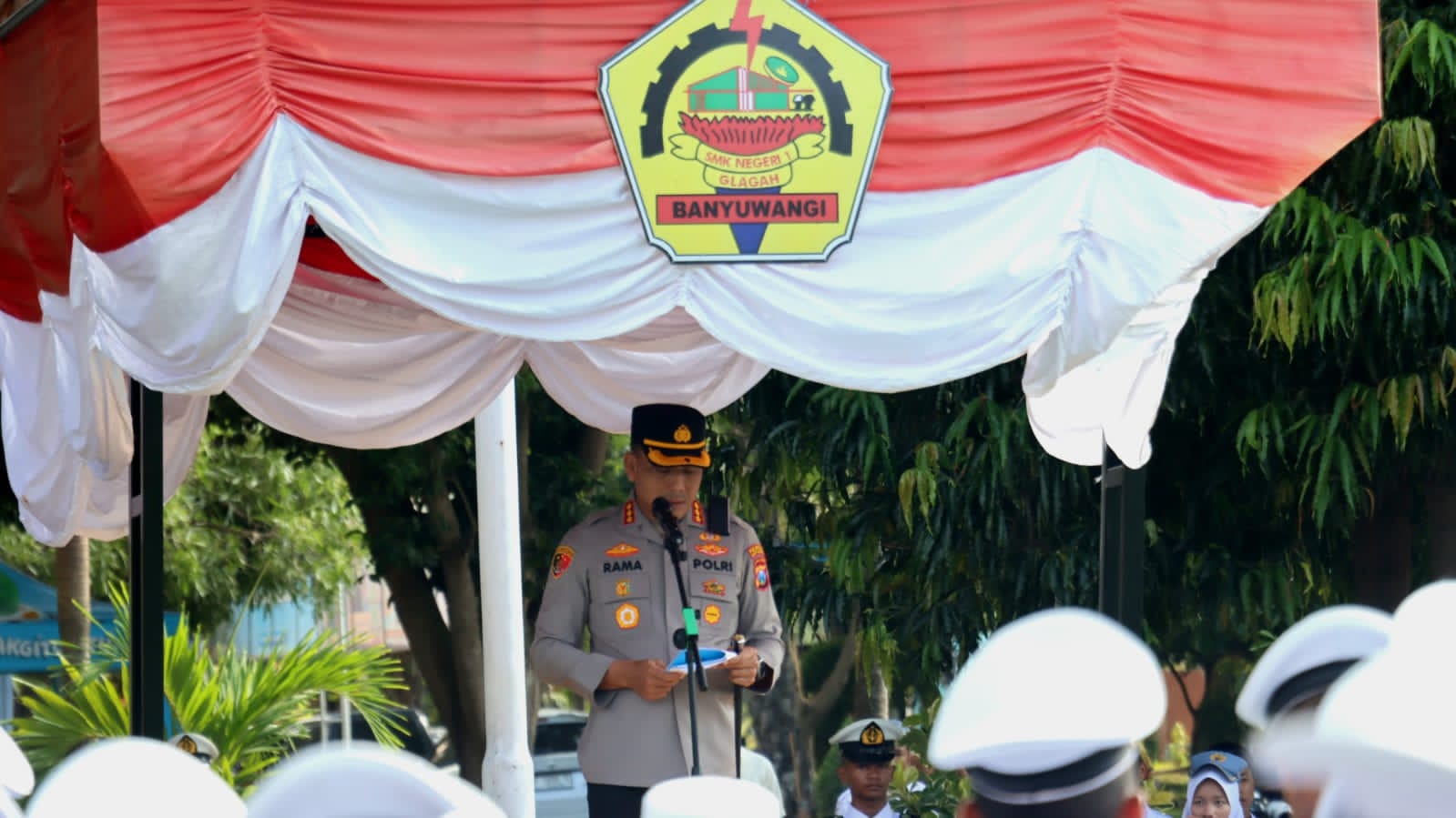 Dalam amanatnya, Kapolresta Banyuwangi menyampaikan pesan inspiratif kepada para pelajar agar memanfaatkan waktu belajar sebaik-baiknya sebagai bekal menuju generasi emas Indonesia 2045.