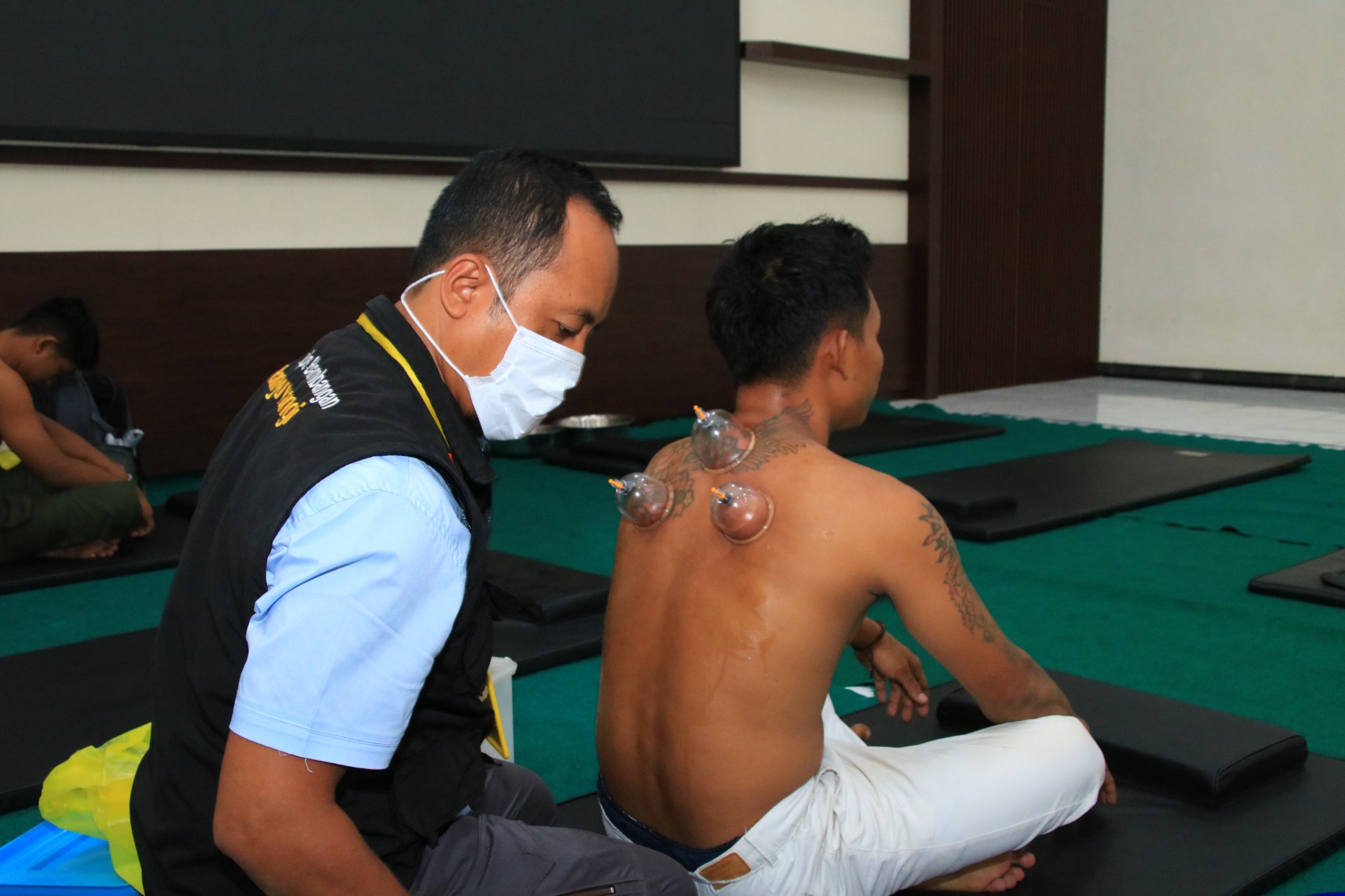 Terapi dan bekam yang digelar di area Lapas Banyuwangi ini diikuti antusias oleh sejumlah pegawai dan warga binaan.