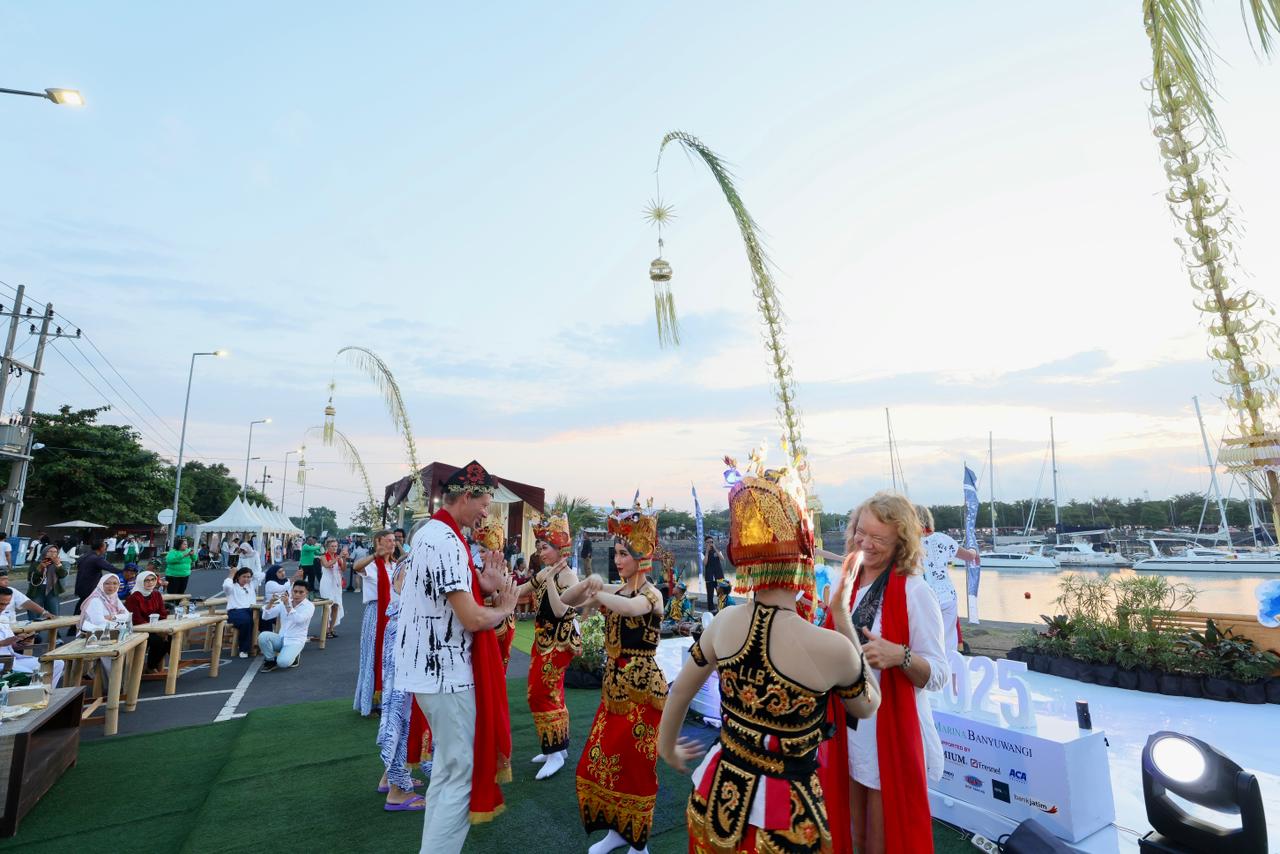 Kedatangan para yachter disambut hangat oleh Bupati Banyuwangi Ipuk Fiestiandani bersama masyarakat dalam Welcoming Ceremony Sail to Indonesia 2025 di Pantai Marina Boom. Suasana penyambutan berlangsung meriah dengan penampilan Tari Gandrung, tarian khas Banyuwangi sebagai simbol penghormatan bagi tamu istimewa.