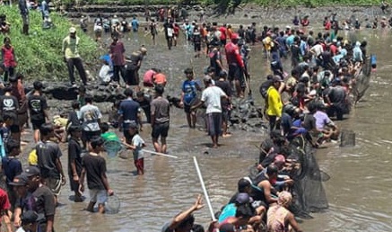 Fenomena yang hanya terjadi sekali dalam setahun ini telah menjadi tradisi rakyat yang selalu dinantikan. Warga datang membawa berbagai peralatan sederhana seperti jaring, jala, hingga ember untuk menangkap ikan yang terjebak di genangan air dangkal.