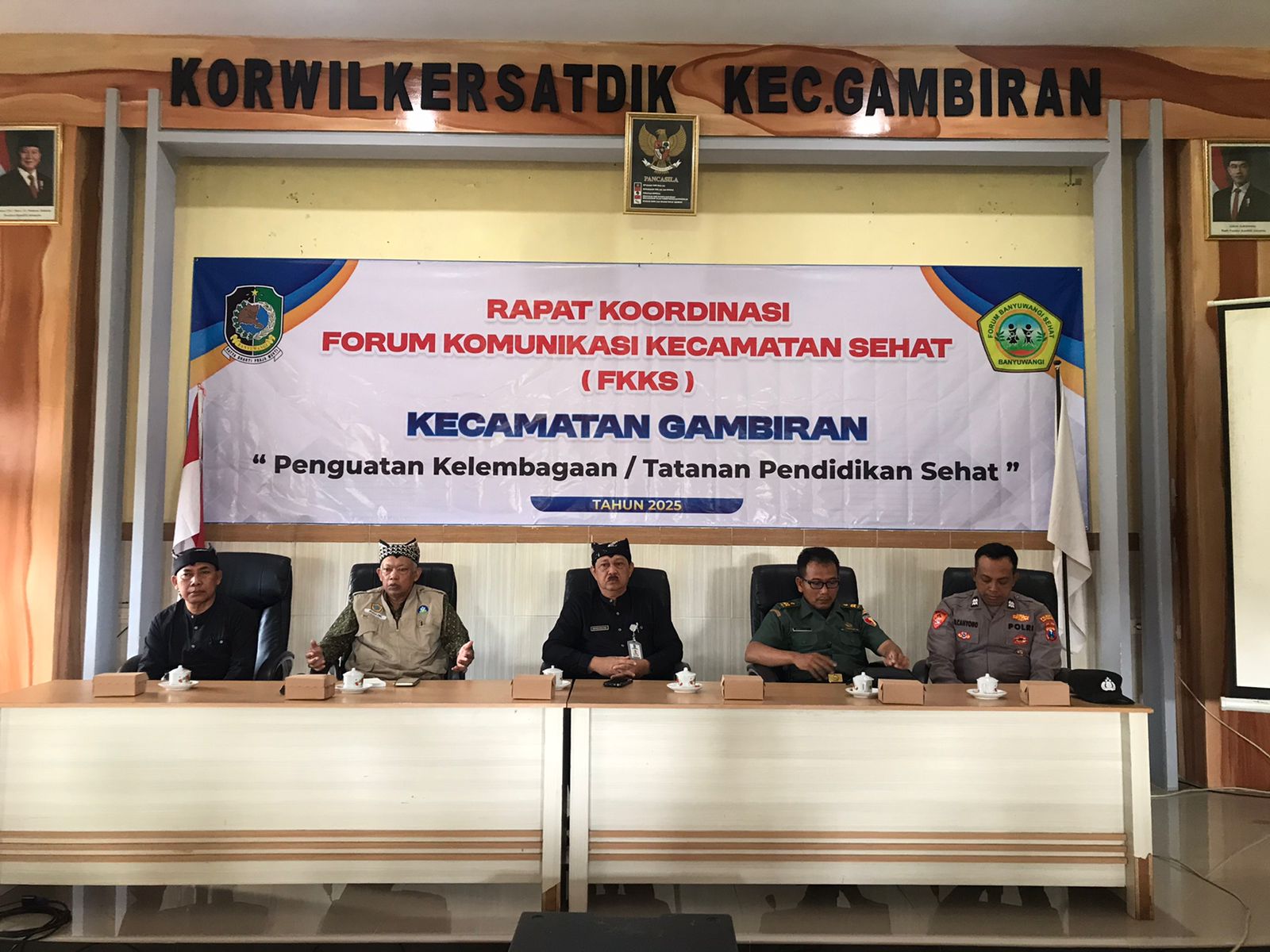 Gambiran – Komitmen TNI Angkatan Darat dalam mendukung peningkatan kualitas kesehatan masyarakat di wilayah terus diwujudkan. Peltu Mujiono, Bati Tuud (Bintara Tinggi Tata Usaha Urusan Dalam) Koramil 06 Gambiran Kodim 0825 Banyuwangi, mewakili Danramil, secara aktif menghadiri kegiatan Forum Kecamatan Sehat yang digelar di Aula Kecamatan Gambiran, Selasa, 04-11-2025