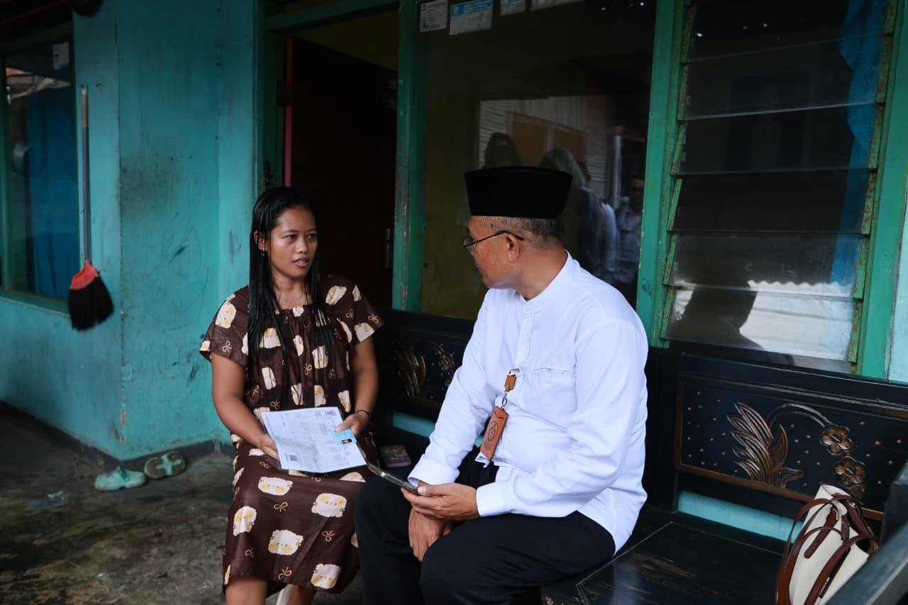 “Saya tinggal sendirian di rumah ini, pekerjaannya tukang mengikat sayur. Kalau mau lebaran bkin pesanan kue tetangga. Alhamdulillah, sekarang dinyatakan layak, semoga layak dapat bansos,” kata Adiyah yang tinggal seorang diri di rumahnya.