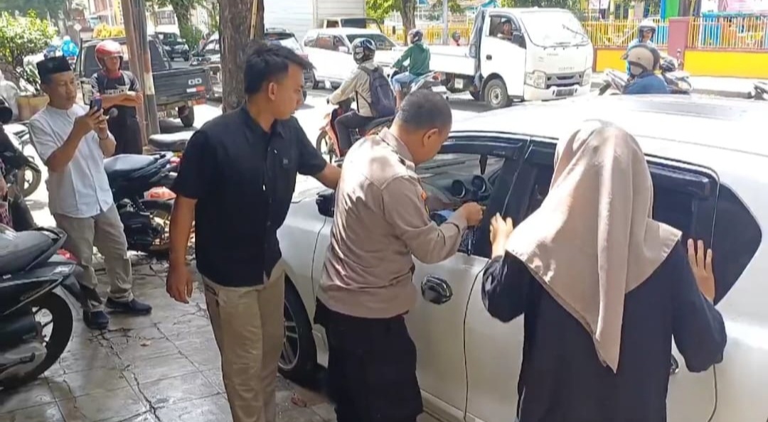 Menurut Iptu Tatang, petugas segera merespons laporan tersebut dan langsung melakukan tindakan pecah kaca depan sebelah kiri dari mobil tersebut.