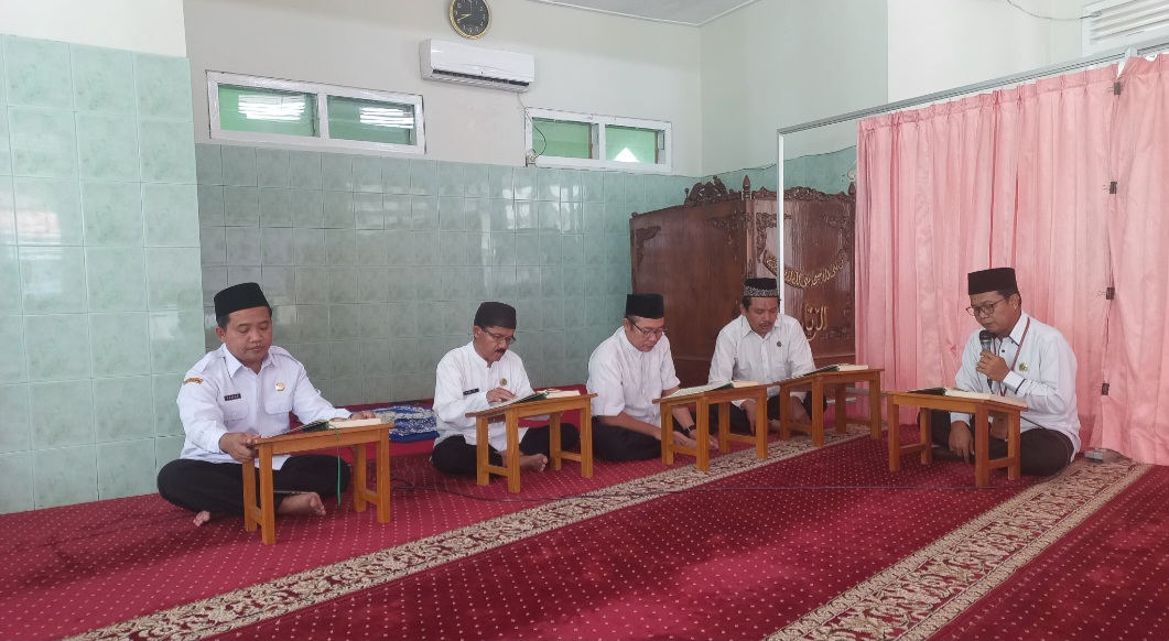 Kepala Kantor Kementerian Agama Kabupaten Banyuwangi, Chaironi Hidayat, turut serta dalam tadarus Al-Qur’an bersama aparatur sipil negara pada Seksi Bimbingan Masyarakat Islam. Kegiatan ini dimulai pada hari pertama kerja, Rabu (13/03/2024), di Masjid Ar Royan. Setiap harinya, direncanakan dua juz Al-Qur’an dibaca oleh para pegawai secara bergiliran.