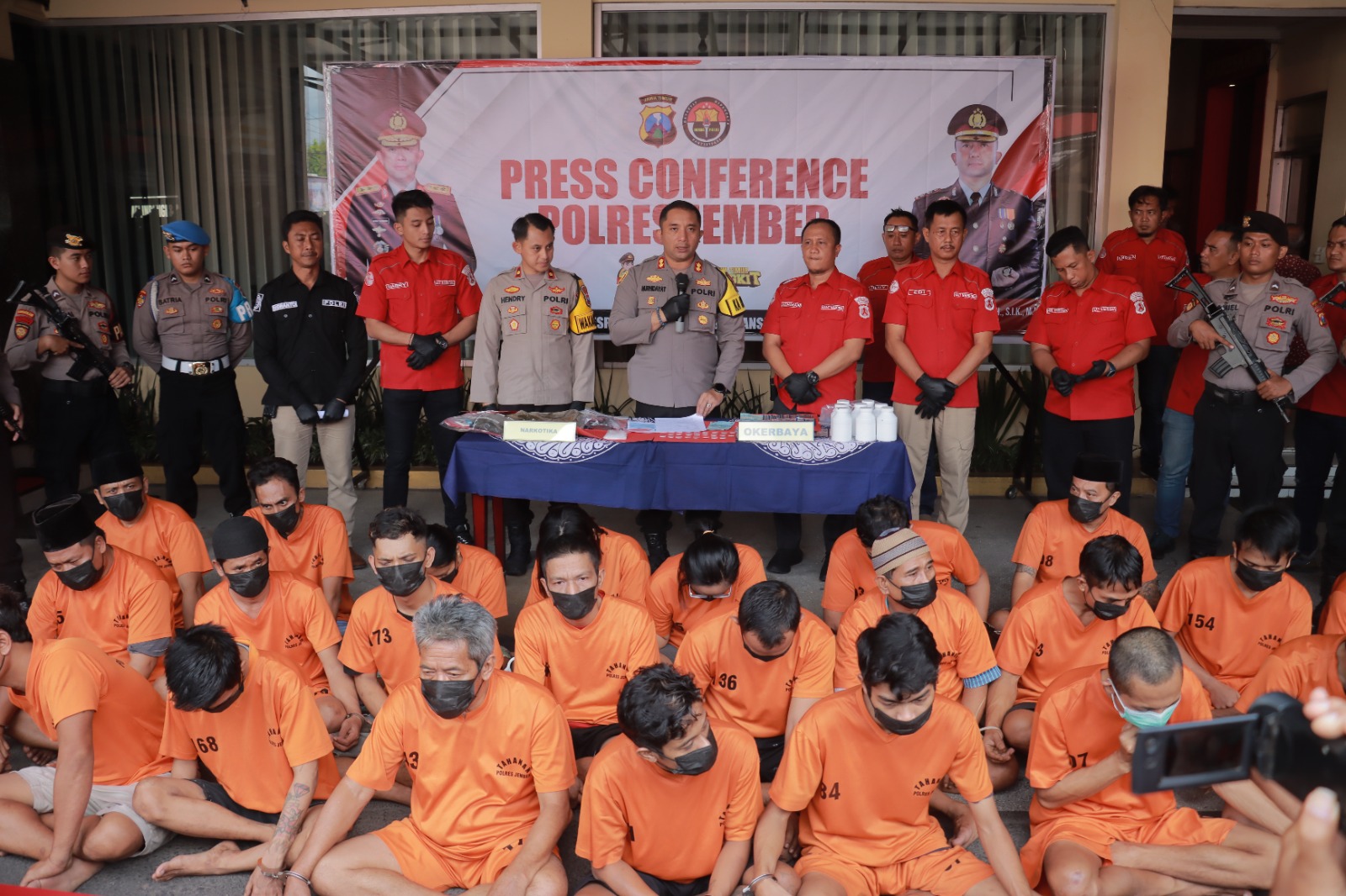 “Dari 49 tersangka, terdapat 12 orang yang tergolong sebagai pengedar narkoba, sedangkan 37 orang lainnya merupakan pemakai atau orang yang turut serta membantu. Ada tiga orang yang akan direhabilitasi karena tidak ditemukan barang bukti yang cukup dan perlu ditinjau oleh pihak berwenang seperti Badan Narkotika Nasional (BNK) dan Satreskoba,” ungkap Kapolres.