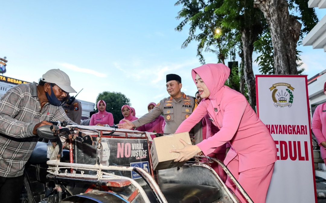 Kegiatan tersebut diawali oleh sambutan Kapolrestabes kemudian dilanjutkan dengan nasi kotak dan paket sembako kepada abang becak oleh Bhayangkari.