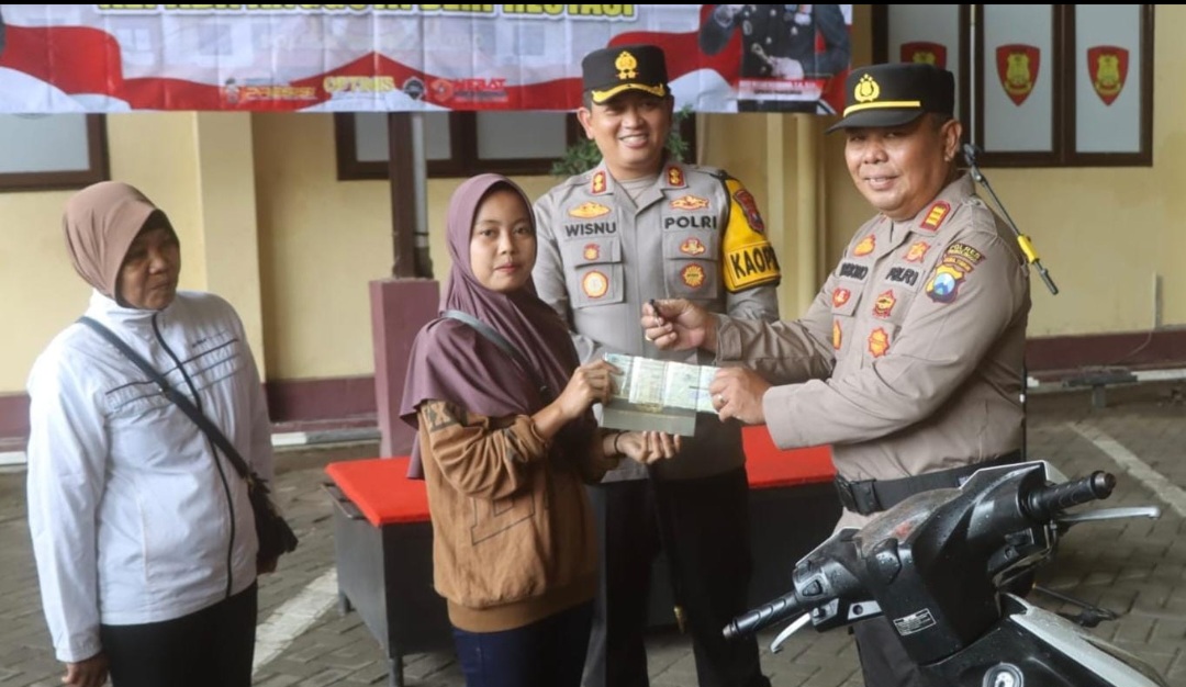 PROBOLINGGO, Actanews.id- Kepolisian Resor Probolinggo mengembalikan satu unit motor hasil sitaan pencurian sepeda motor (curanmor) kepada korbannya, Amalia Nur Hasanah (20), warga Kecamatan Lumbang di Lapangan Apel Mapolres Probolinggo, Rabu (13/3/2024).