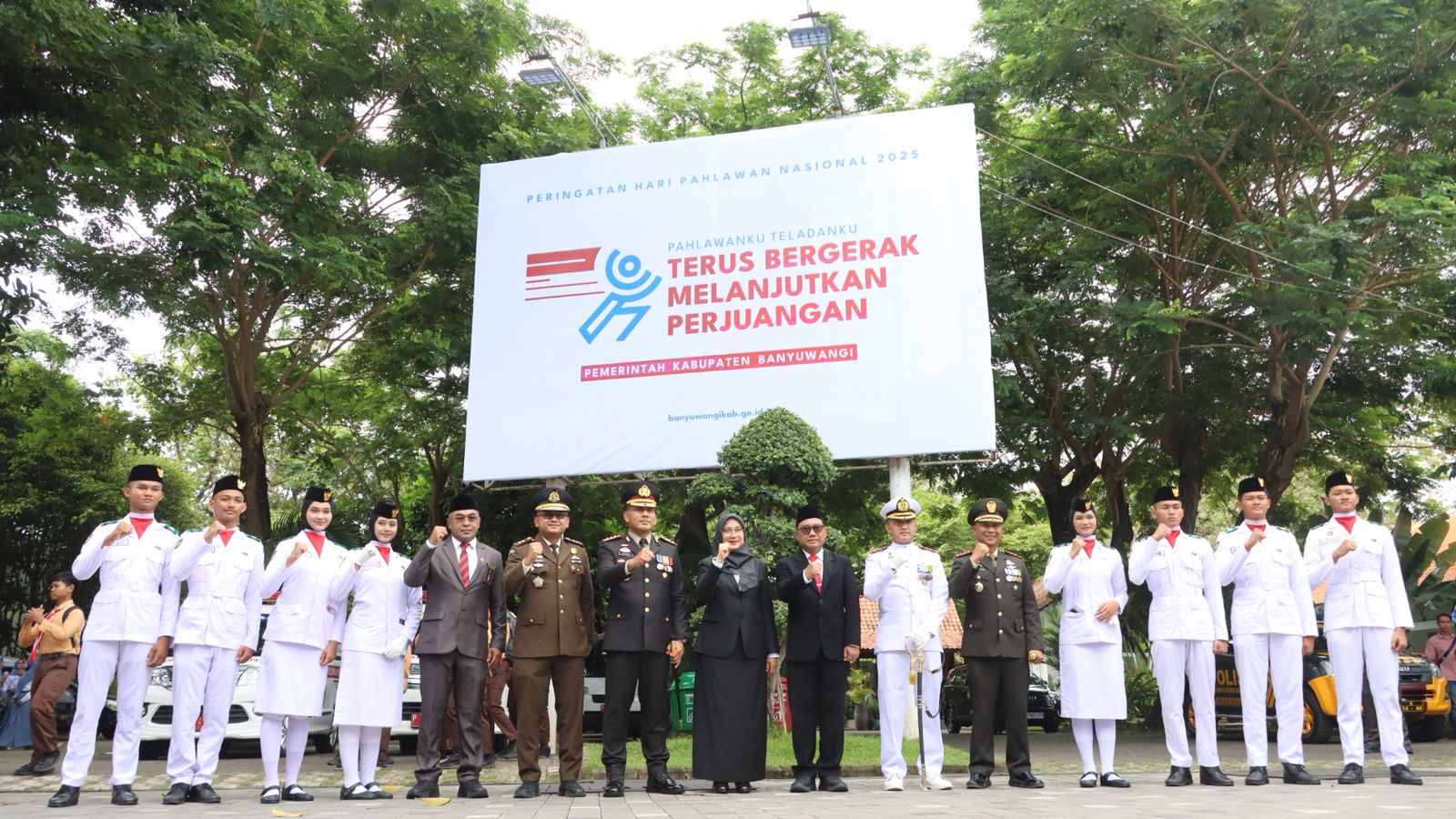 Sementara itu, di Mako Polresta Banyuwangi, upacara peringatan Hari Pahlawan juga digelar secara internal dengan Wakapolresta AKBP Teguh Priyo Wasono, S.I.K. sebagai inspektur upacara. Dalam kesempatan tersebut, ia membacakan amanat Menteri Sosial RI Saifullah Yusuf, yang menekankan pentingnya meneladani semangat dan keteladanan para pahlawan.