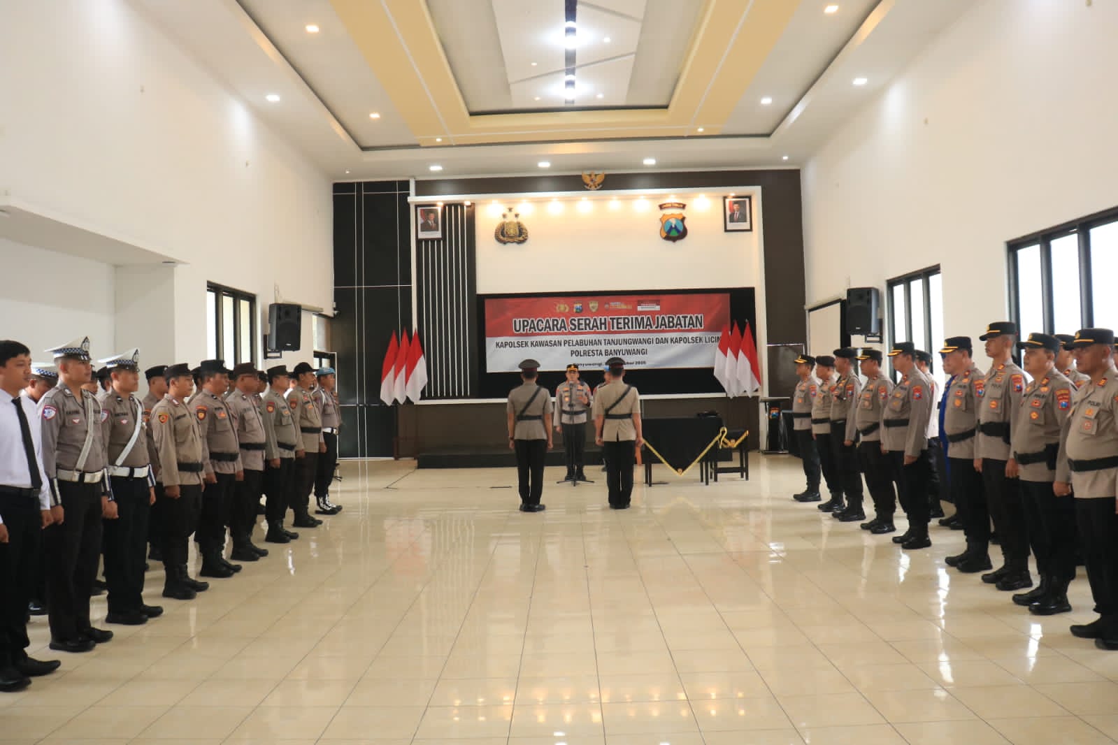 Banyuwangi, Actanews.id  –  Suasana penuh khidmat mewarnai pelaksanaan upacara serah terima jabatan (sertijab) sejumlah Kapolsek jajaran Polresta Banyuwangi yang digelar pada Kamis pagi (13/11/2025) di Gedung Rupatama Wira Pratama Polresta Banyuwangi.