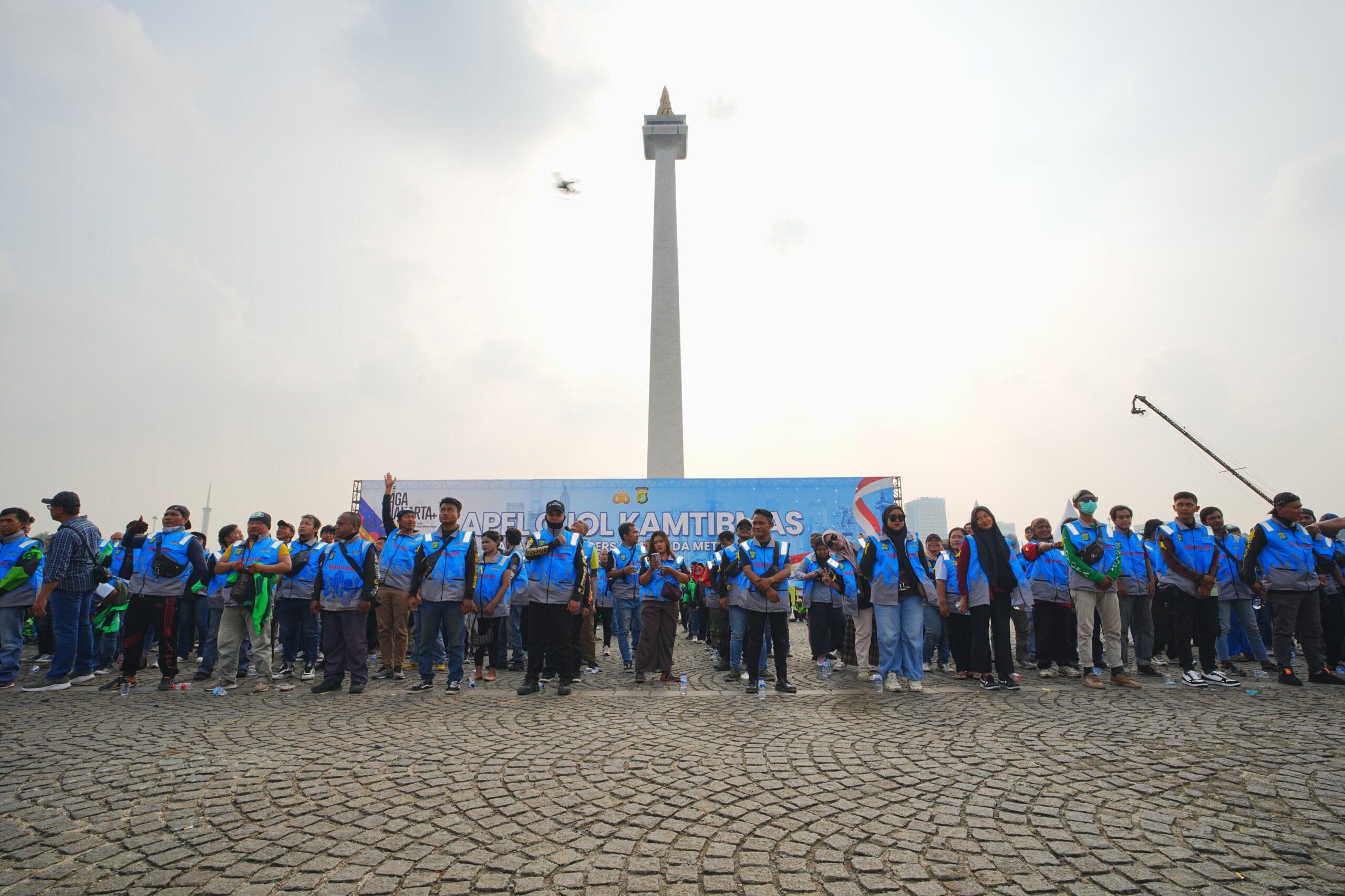 Pantauan di lokasi, ratusan pengemudi ojol hadir dengan mengenakan rompi biru bertuliskan “Jaga Jakarta bersama Polda Metro Jaya”. Suasana apel semakin khidmat ketika Kapolri secara simbolis menyerahkan helm dan rompi kepada perwakilan ojol. Turut hadir Wakapolri Komjen Dedi Prasetyo, Kapolda Metro Jaya Irjen Asep Edi Suheri, pejabat utama Mabes Polri, serta jajaran Kapolres Polda Metro Jaya.