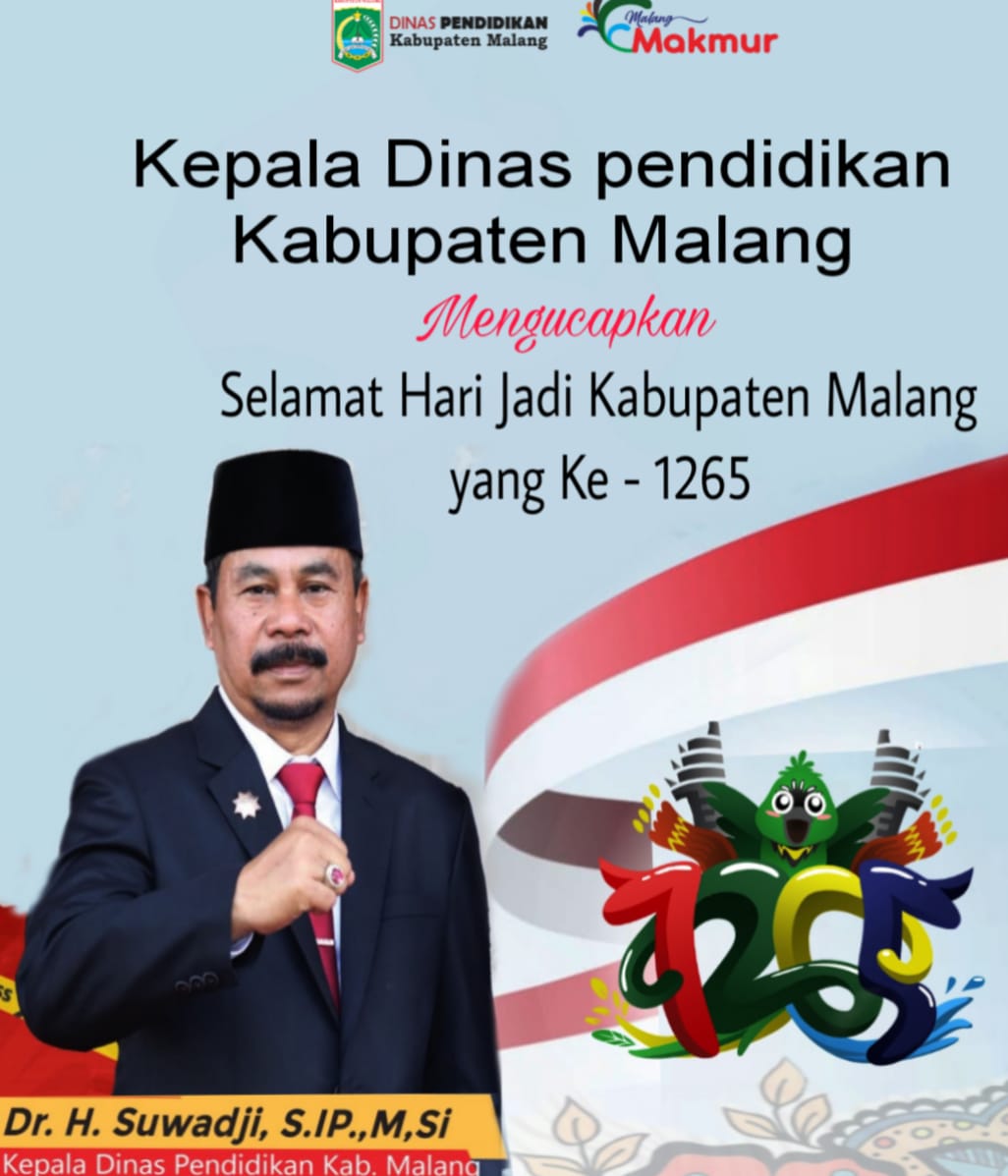 MALANG, Actanews.id – Kabupaten Malang memasuki usia ke-1265 pada 28 November 2025. Kepala Dinas Pendidikan Kabupaten Malang, Dr. H. Suwadji, S.IP., M.Si., turut menyampaikan ucapan selamat sekaligus mengajak masyarakat memperkuat semangat persatuan dan kolaborasi demi terwujudnya pembangunan daerah yang berkelanjutan.