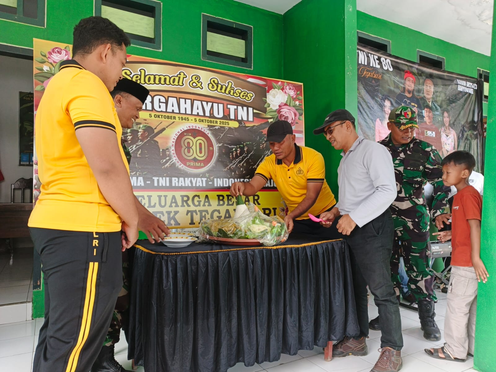 BANYUWANGI, Actanews.id — Dalam suasana penuh kebersamaan dan semangat nasionalisme, Koramil 0825/23 Tegalsari menggelar tasyakuran memperingati Hari Ulang Tahun (HUT) ke-80 Tentara Nasional Indonesia (TNI), Jumat (10/10/2025). Acara yang mengusung tema “TNI PRIMA, TNI RAKYAT, INDONESIA MAJU” itu berlangsung semarak di halaman Makoramil Tegalsari, dihadiri oleh jajaran Forkopimka, tokoh masyarakat, tokoh agama, tokoh pemuda, serta masyarakat setempat.