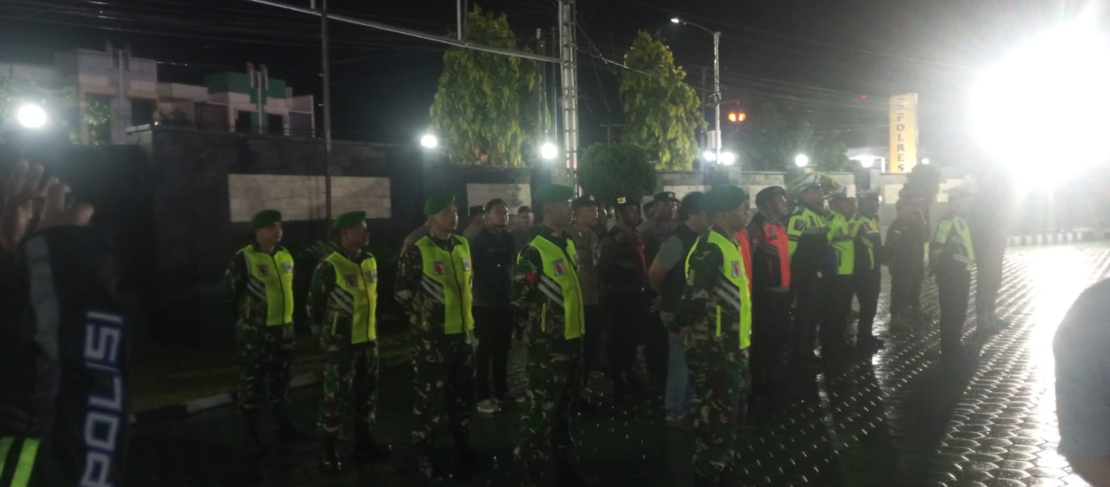 Sebanyak 45 personel gabungan terlibat dalam kegiatan tersebut, terdiri dari 30 personel Polres Banyuwangi, 5 personel Kodim 0825/Banyuwangi, serta 10 personel Satpol PP. Seluruh personel menggunakan pakaian dinas lapangan (PDL) lengkap dengan baret dan rompi pengaman.