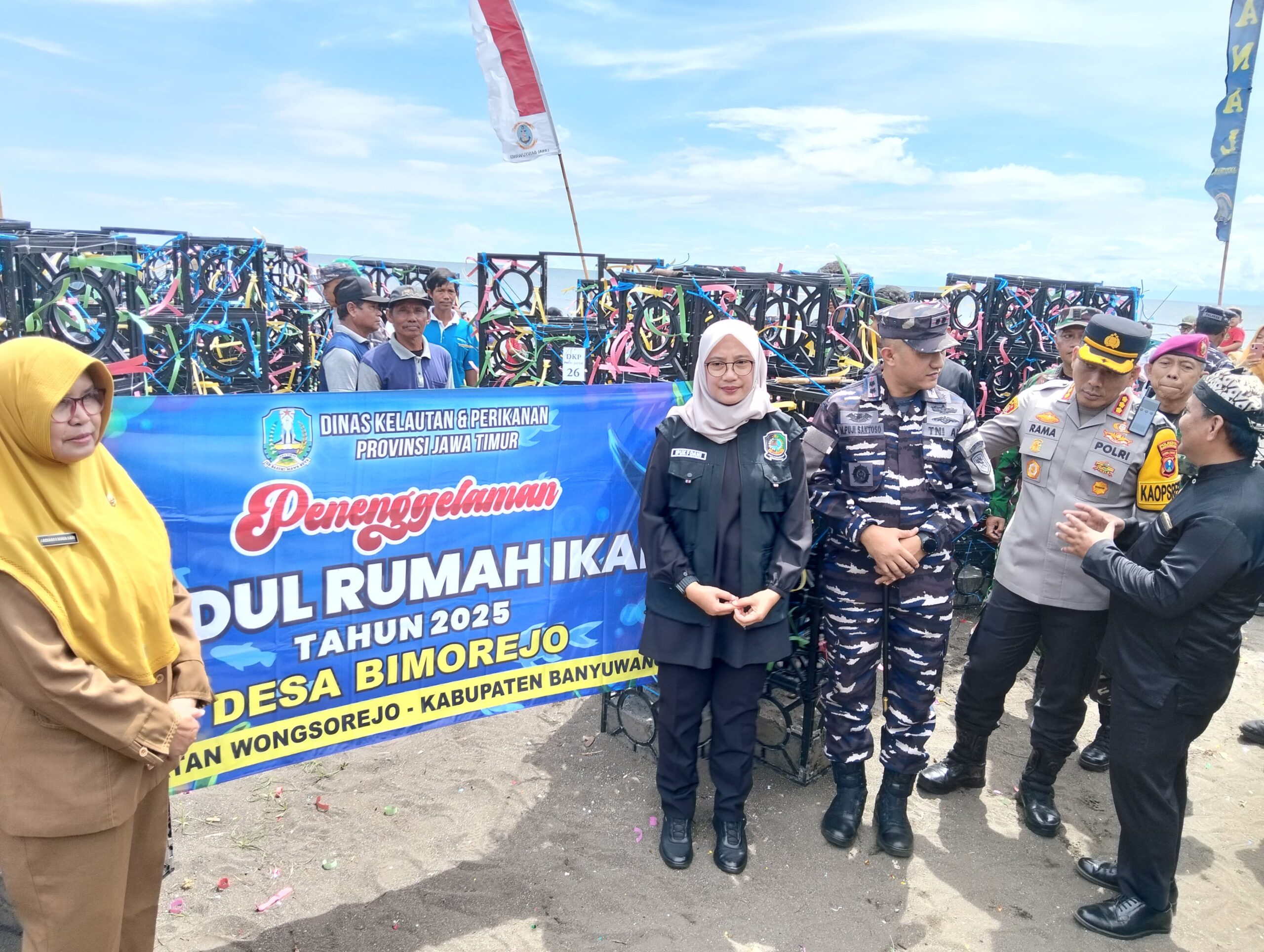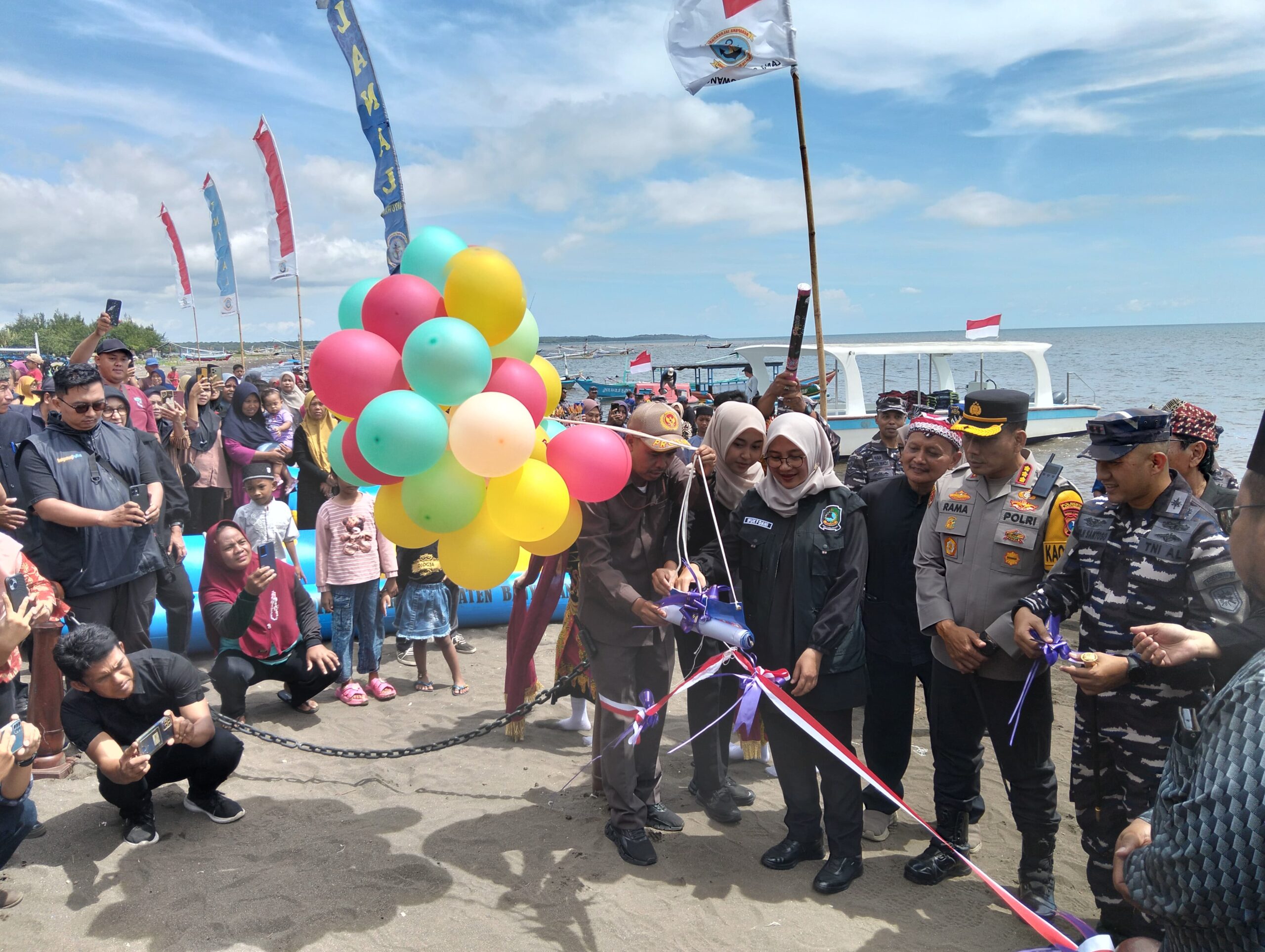 Wongsorejo, Banyuwangi — Suasana Pantai Bimo di Dusun Bimo, Desa Bimorejo, Kecamatan Wongsorejo, Selasa (18/11/2025), tampak semarak. Sekitar 300 warga dan tamu undangan memadati lokasi untuk menyaksikan peresmian Rumah Apung serta penyerahan fish apartment, banana boat, dan donut boat oleh Bupati Banyuwangi, Ipuk Fiestiandani. Kegiatan ini menjadi langkah strategis Pemkab Banyuwangi dalam mengembangkan wisata bahari sekaligus meningkatkan ekonomi masyarakat pesisir.