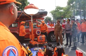 Ratusan personel tersebut disiapkan untuk penanganan bencana berkolaborasi dengan TNI, BPBD dan para relawan.