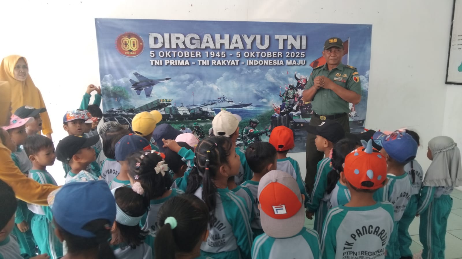 Glenmore, Actanews.id – TK Panca Rini melakukan kunjungan ke Koramil 0825-16/Glenmore, yang disambut hangat oleh Peltu Dedy Eka Kelana. Kunjungan ini bertujuan untuk memperkenalkan anak-anak TK Panca Rini dengan lingkungan Koramil dan mengenal lebih dalam tentang peran dan tugas Bapak TNI. Jumat, 30/10 /2025