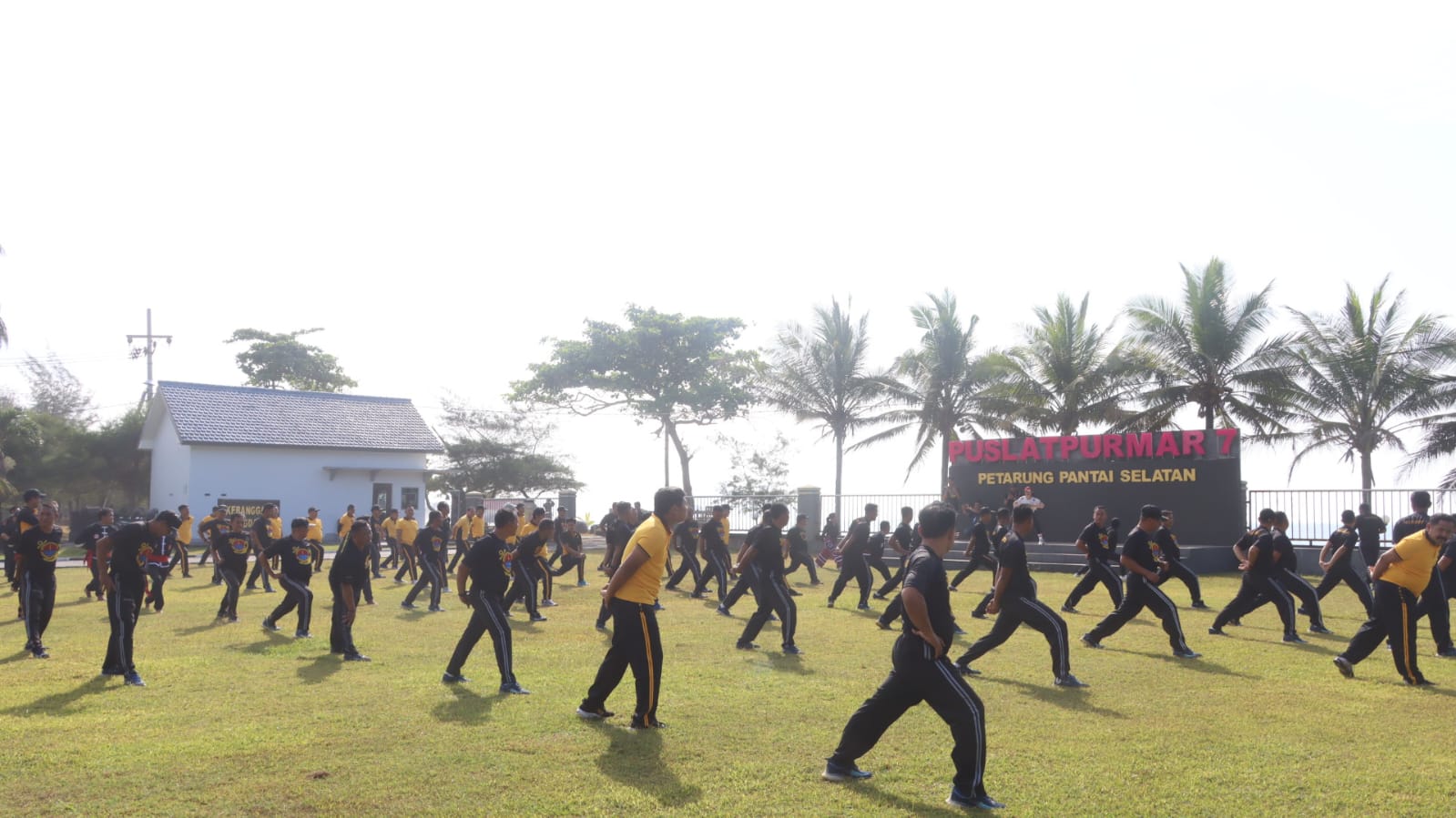 Kegiatan yang dimulai sejak pukul 06.00 WIB ini diikuti oleh jajaran utama Polresta Banyuwangi, termasuk Wakapolresta, para Kabag, serta para Kasat seperti Kasat Lantas, Kasat Narkoba, dan Kasat Polairud. Mereka disambut hangat oleh Komandan Puslatpurmar 7 Lampon beserta jajarannya.