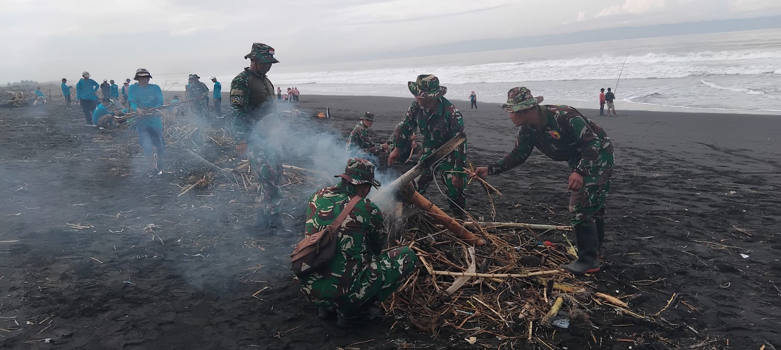 Kegiatan yang berlangsung dengan penuh semangat gotong royong tersebut melibatkan unsur TNI, Polri, pemerintah kecamatan, perangkat desa, serta siswa dan tenaga pendidik dari sejumlah sekolah di wilayah Kencong. Aksi bersih pantai difokuskan pada pembersihan sampah plastik, kayu, serta berbagai limbah yang terbawa arus laut dan merusak pemandangan kawasan pesisir.