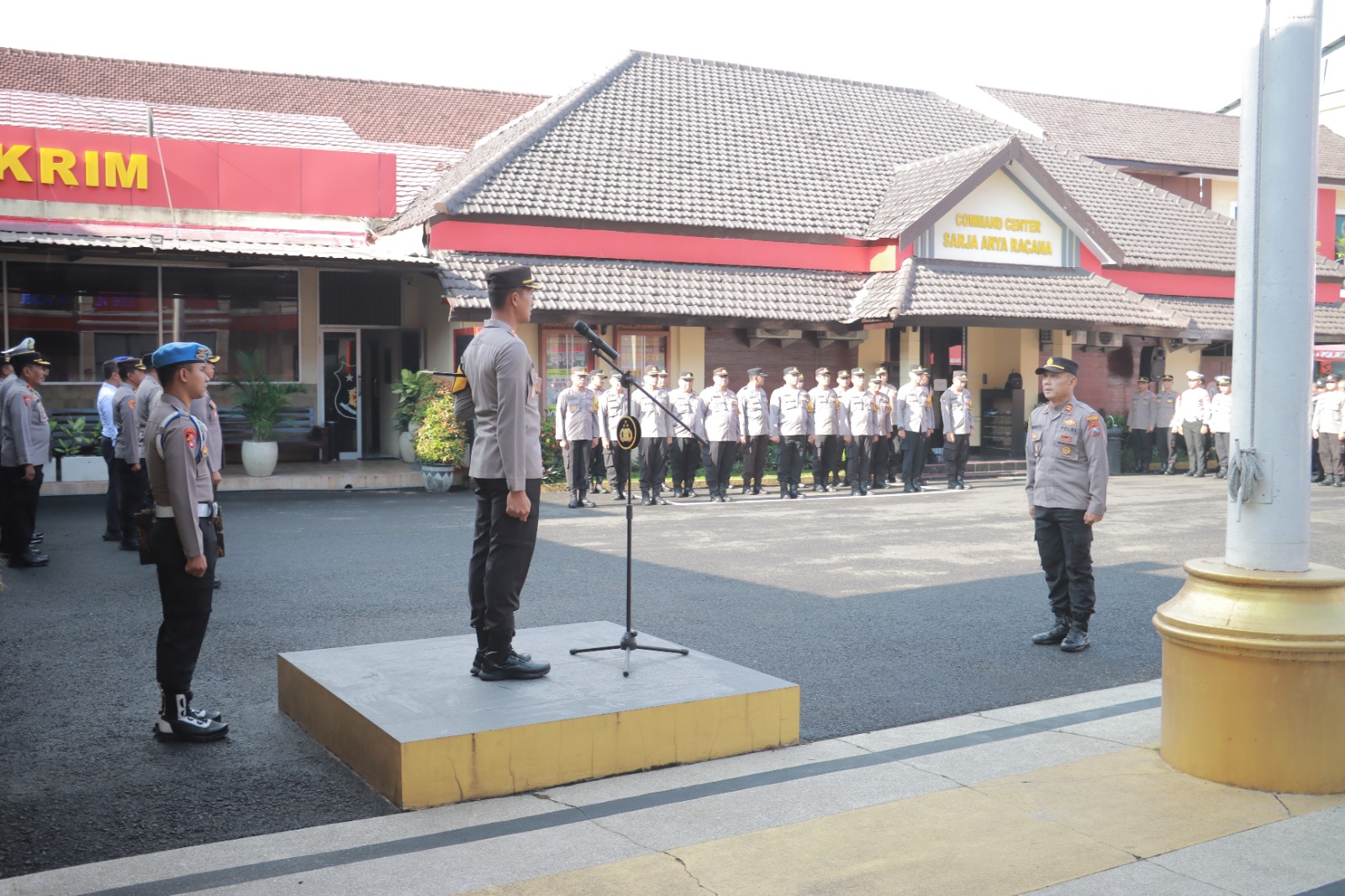 Dalam arahannya, Kapolres Bayu Pratama Gubunagi menekankan pentingnya kesamaan perlakuan di antara anggota polisi. “Semua anggota sama, jangan diberlakukan beda,” tegasnya.
