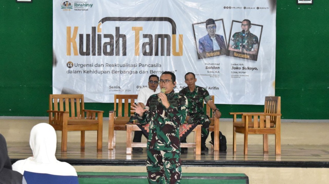 Banyuwangi, Actanews.id – Dalam upaya membangun kesadaran kebangsaan di kalangan generasi muda, Komandan Kodim 0825 Banyuwangi, Letkol Arh Joko Sukoyo, S.Sos., M.Han., memberikan kuliah tamu inspiratif di Program Studi Pendidikan Agama Islam, Institut Agama Islam Ibrahimy Genteng, Senin (23/12/2024).