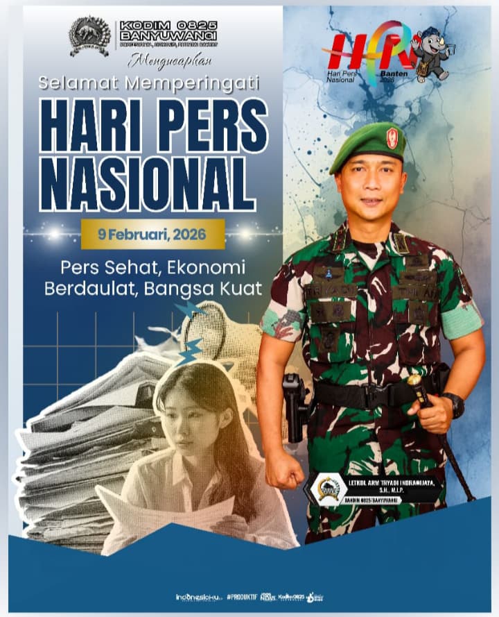 “Selamat Hari Pers Nasional 2026. Terima kasih kepada seluruh insan pers atas kontribusi nyata dalam menyajikan informasi yang mendidik, mencerahkan, dan membangun kesadaran publik. Pers memiliki peran besar dalam menjaga persatuan, stabilitas, dan kondusivitas nasional,” ujar Dandim 0825/Banyuwangi.