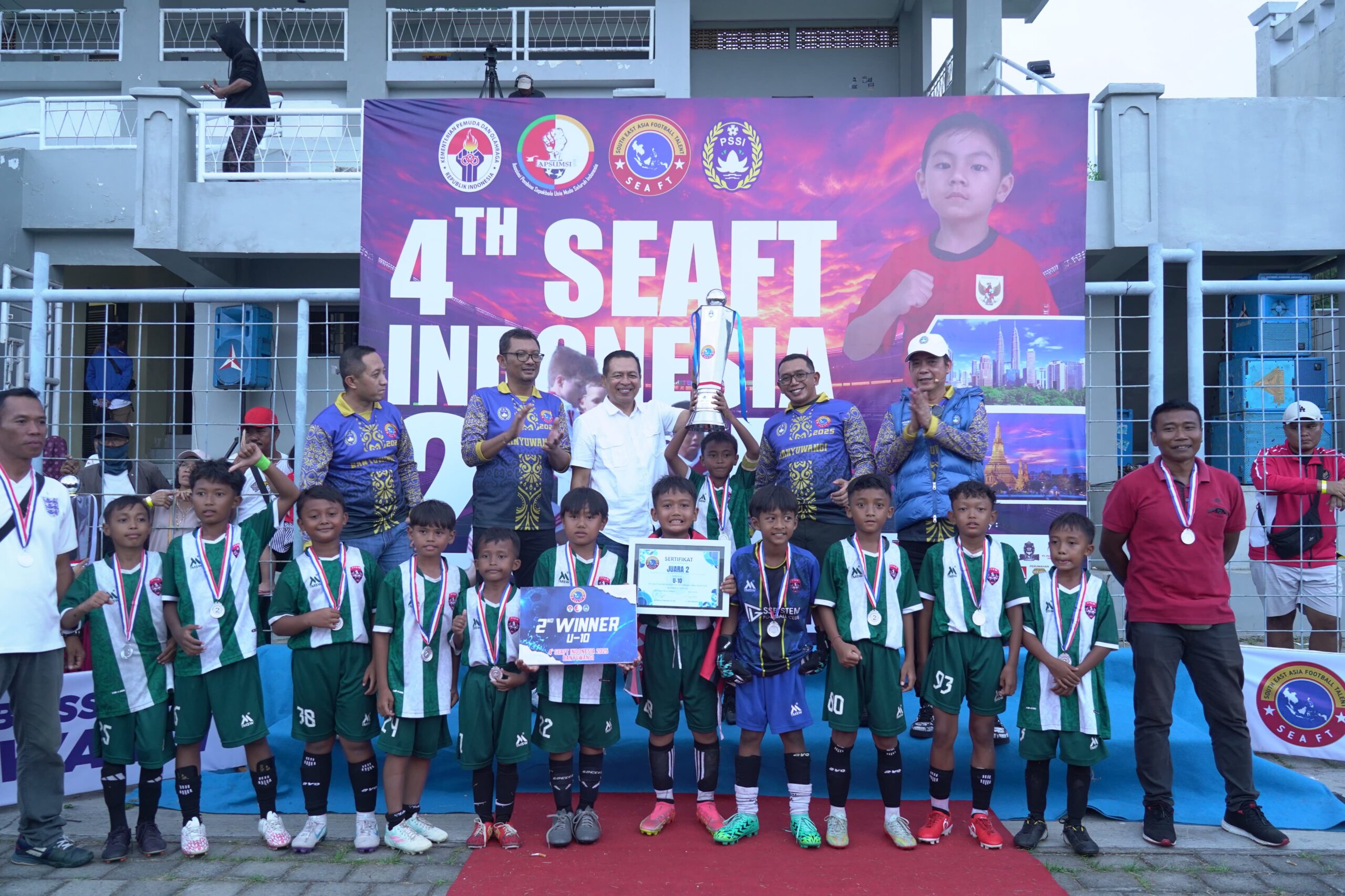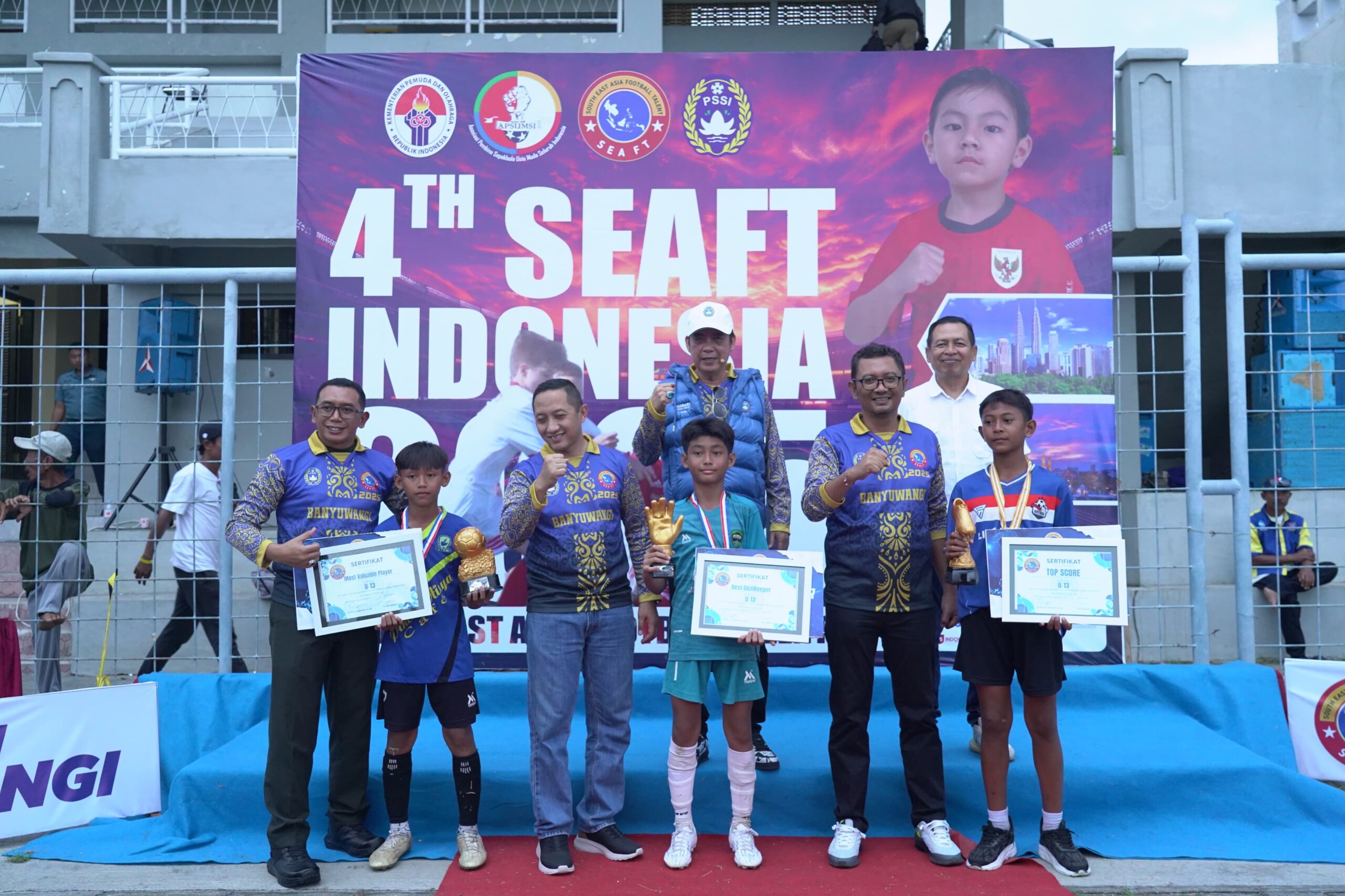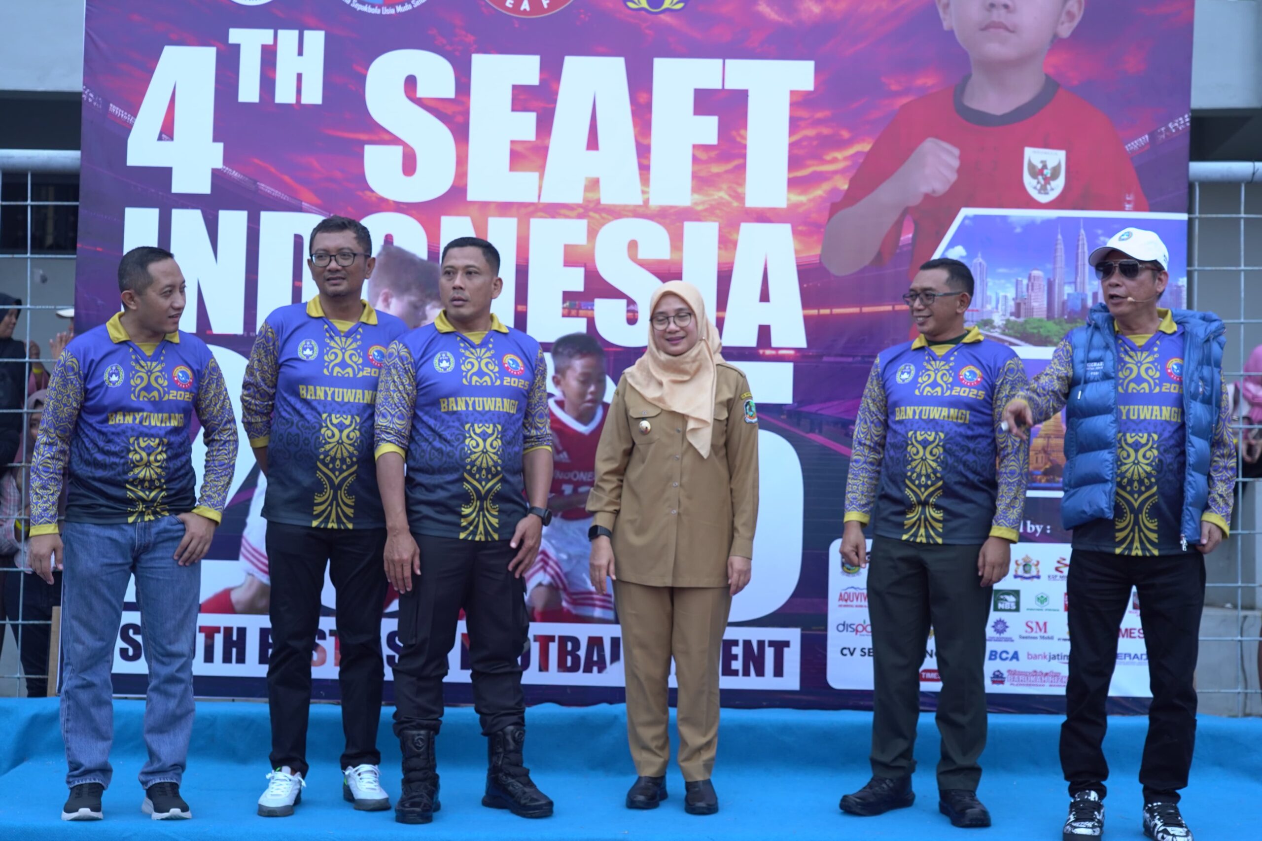 BANYUWANGI, Actanews.id – Komandan Kodim 0825/Banyuwangi, Letkol Arh Joko Sukoyo, S.Sos., M.Han. menghadiri acara penyerahan hadiah Turnamen Sepak Bola Usia Dini dalam rangka 4 Tahun SEAFT 2025 Zona Banyuwangi, yang digelar di Stadion Diponegoro Banyuwangi pada Minggu (16/06/2025) pukul 14.45 WIB.